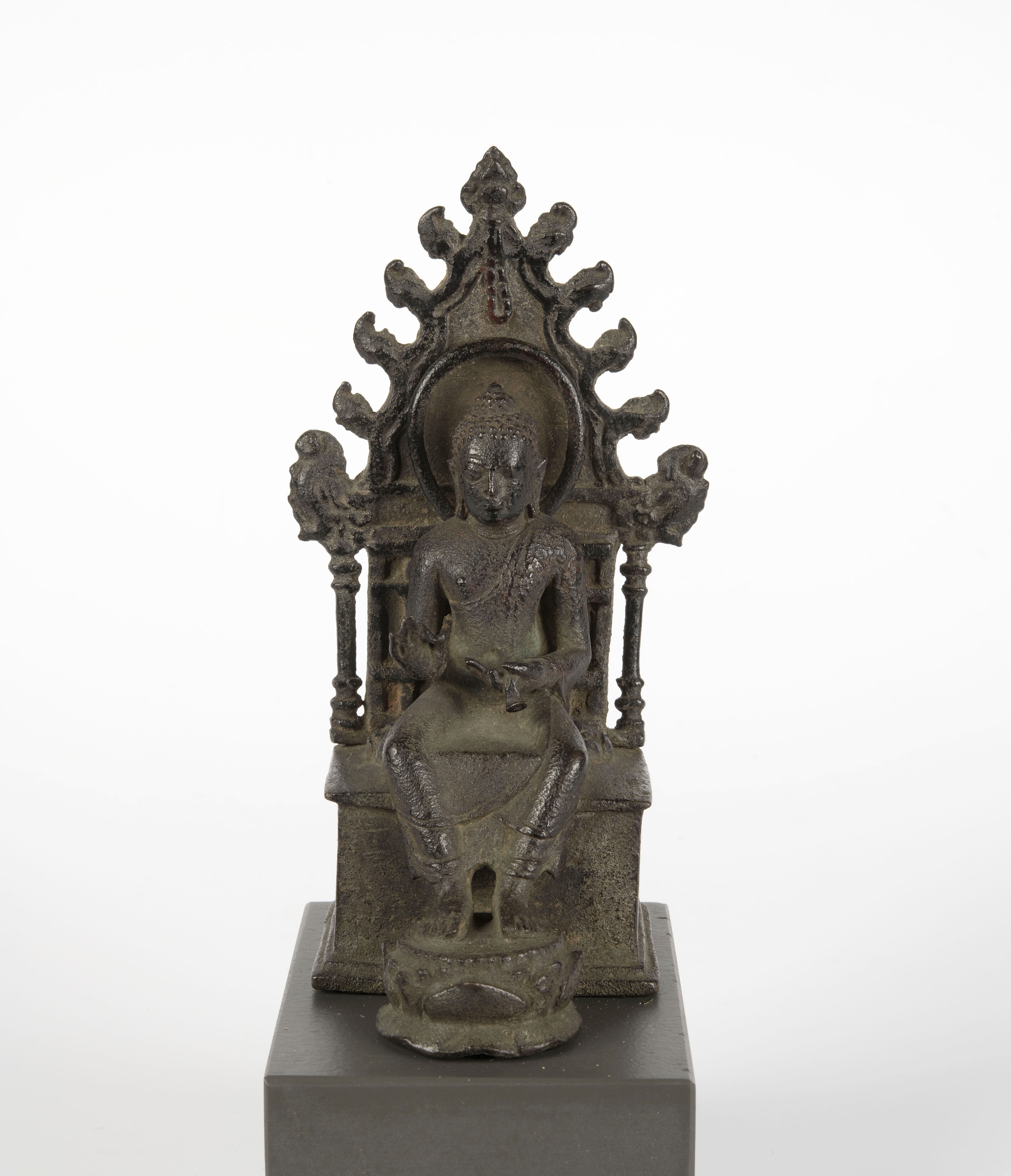 Indo-Javaans beeldje zittende godenfiguur op lotusku...