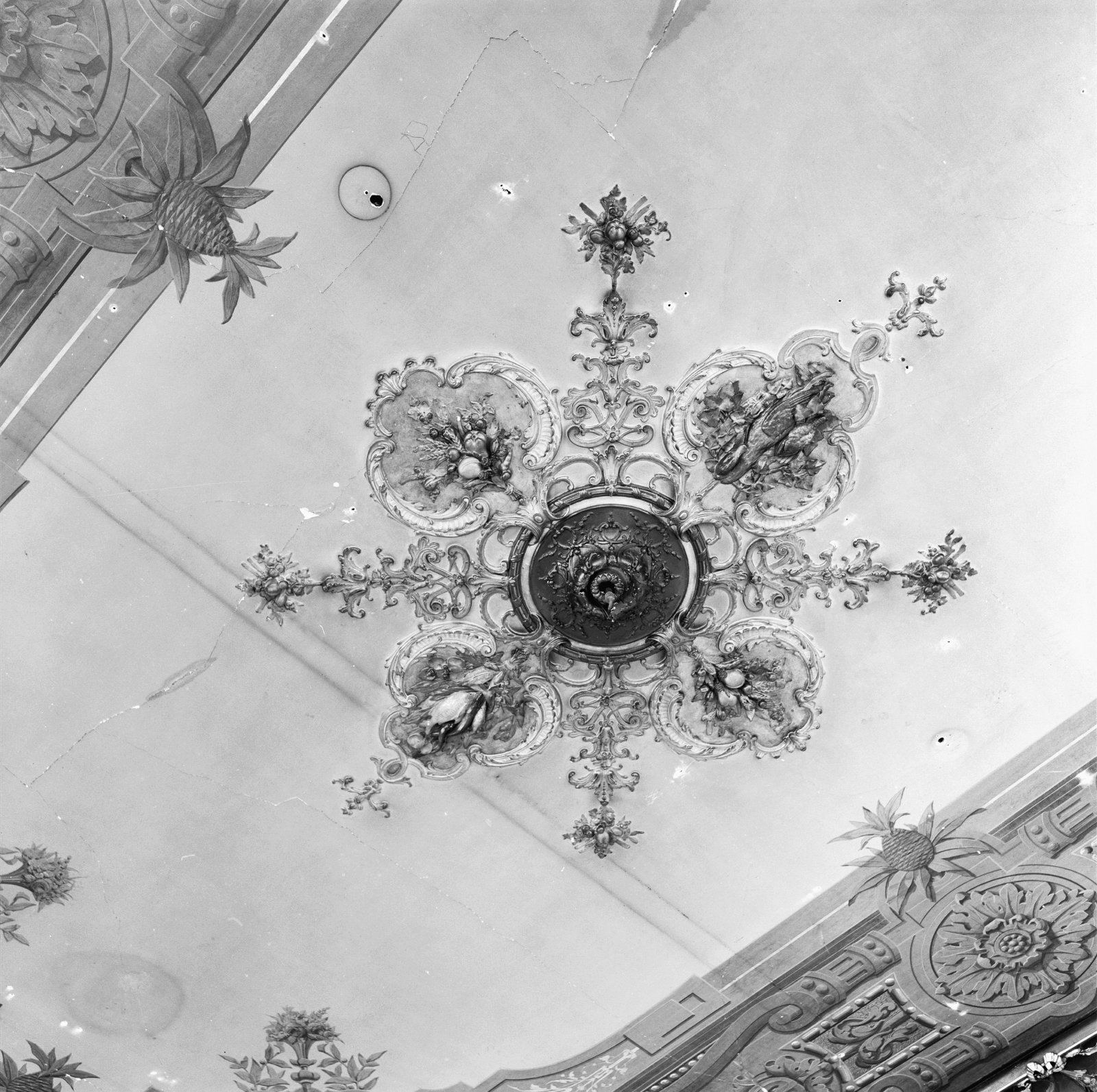 Interieur, detail plafond: middenstuk