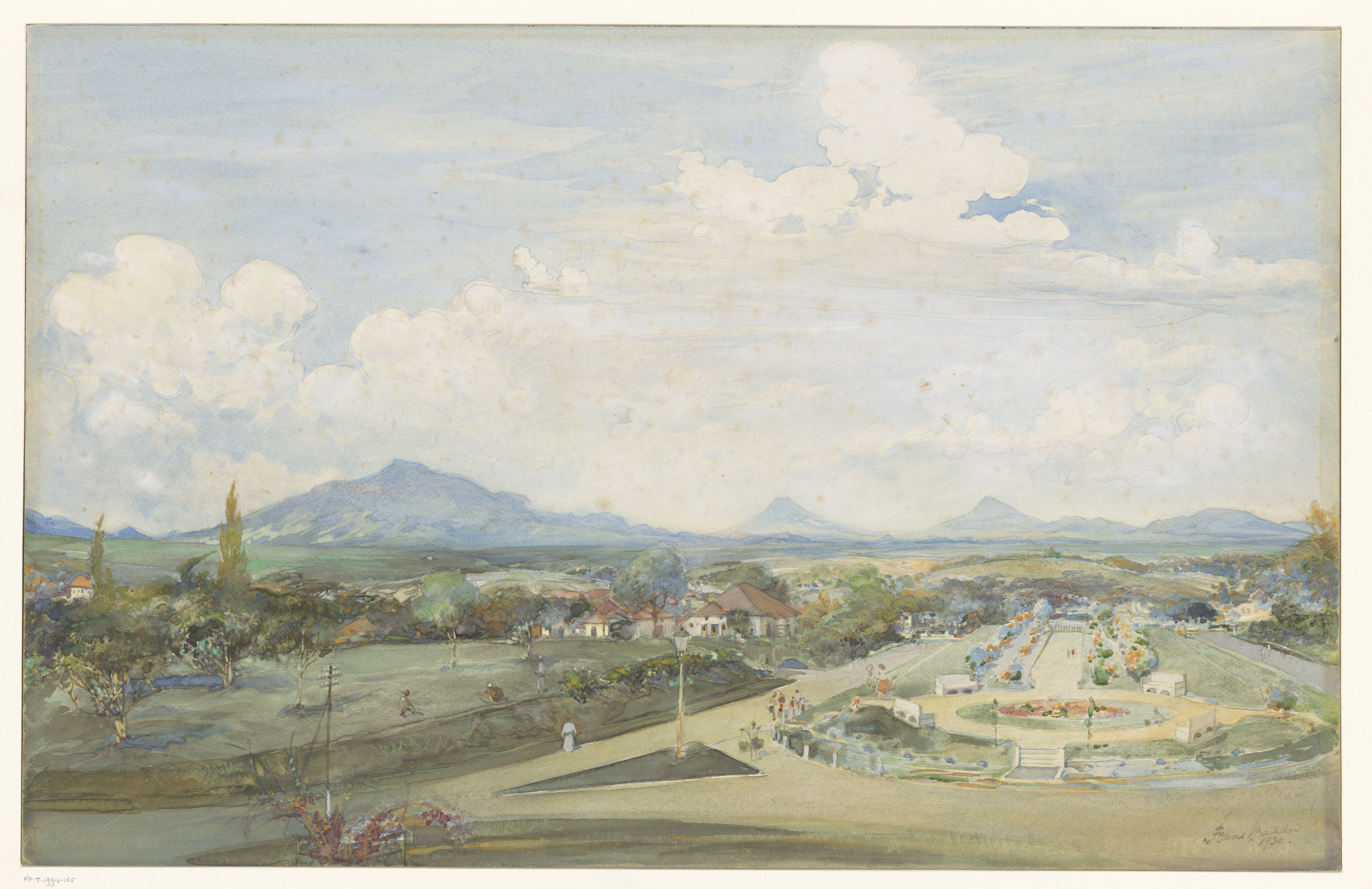 Tillemaplein te Semarang met op de achtergrond de vu...