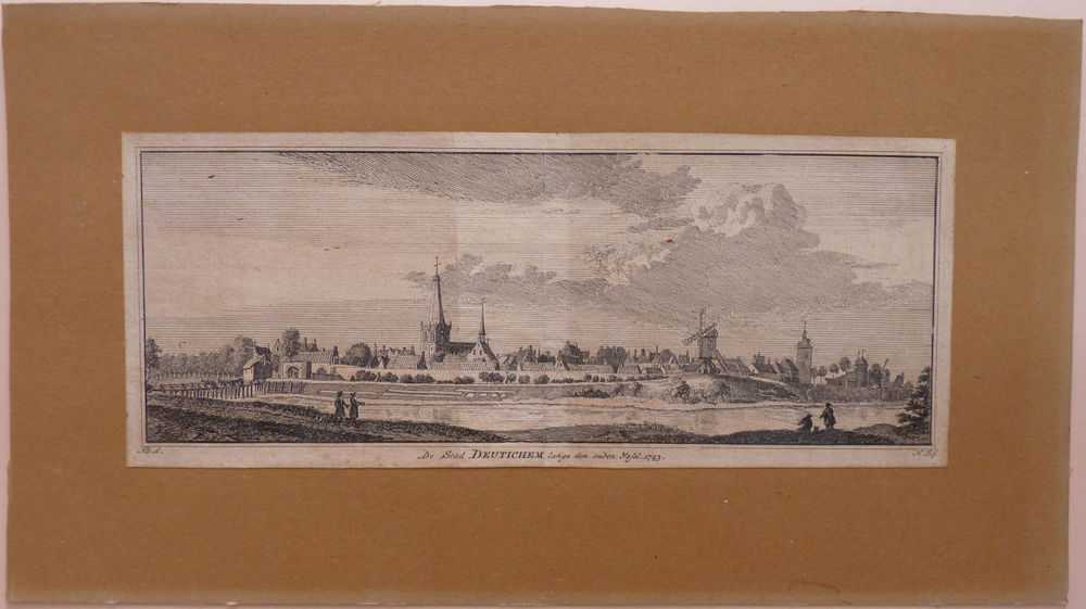 Gravure "De stad Deutinchem langs den ouden Yssel" o...