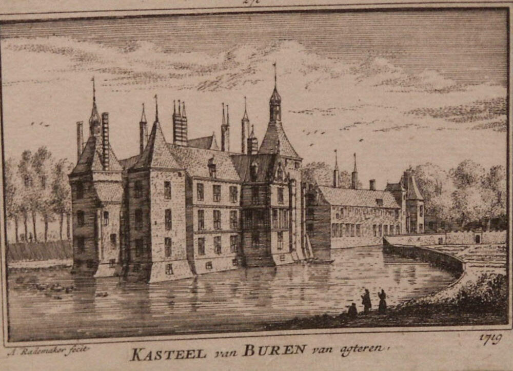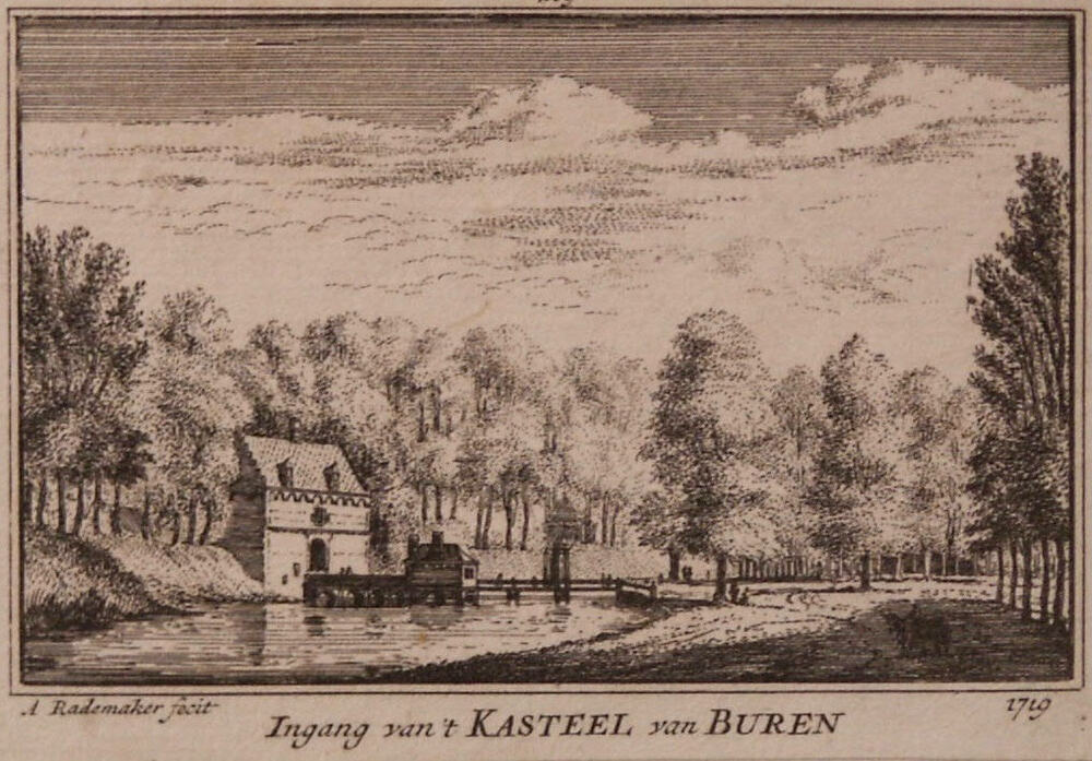 gravure voorstellende Kasteel van Buren van achteren...