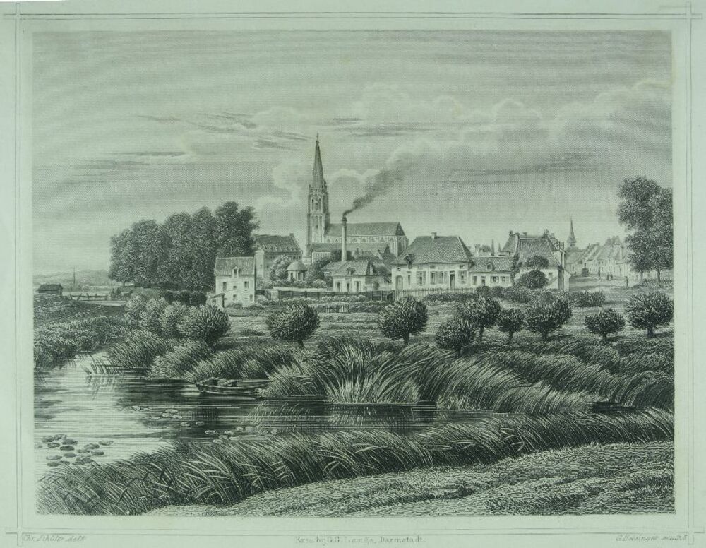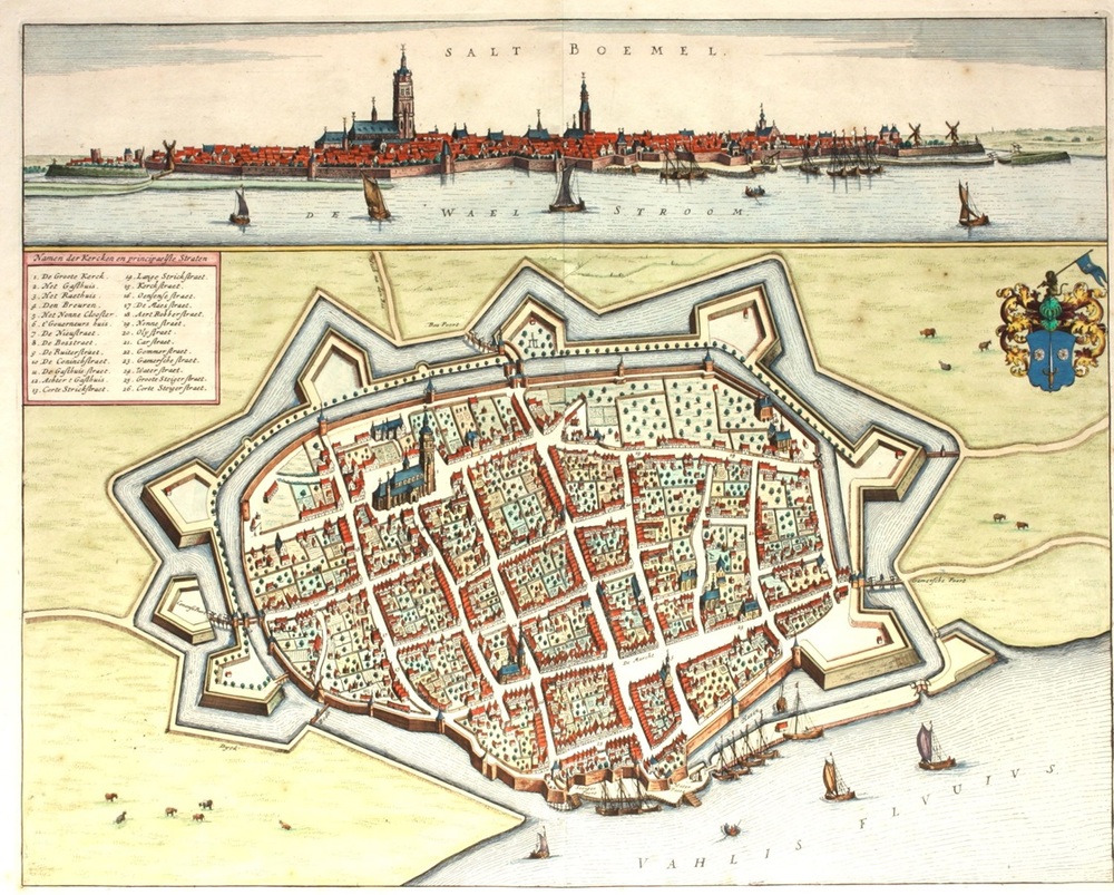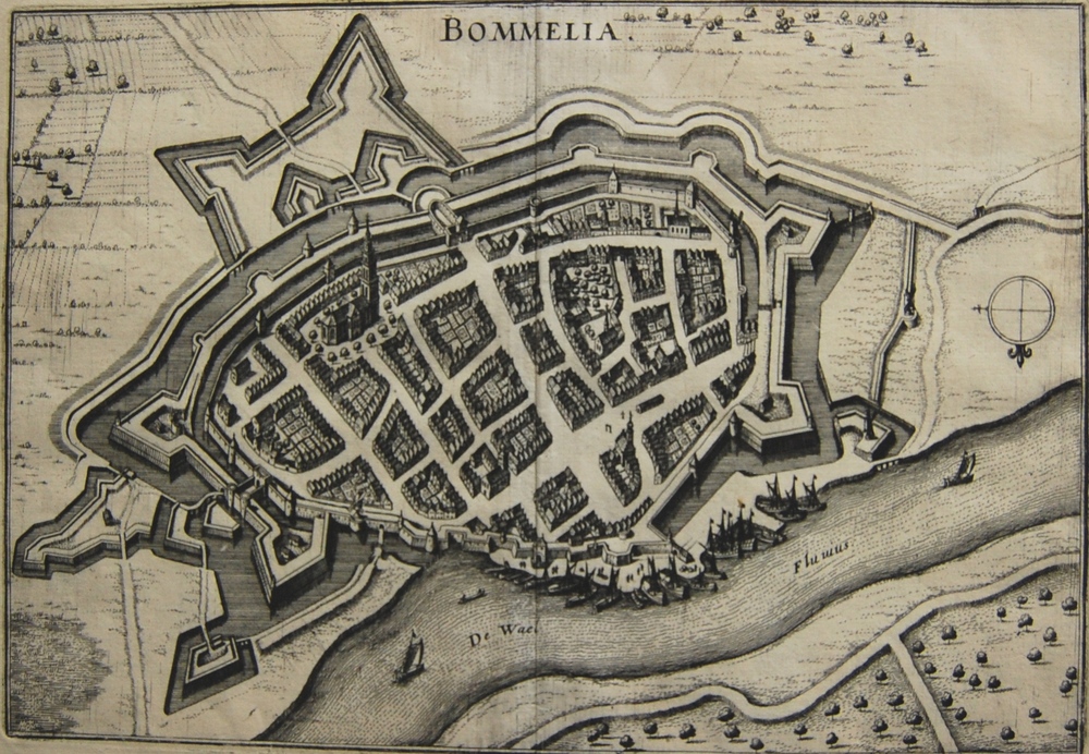 plattegrond Zaltbommel met grachten en wallen. Opsch...
