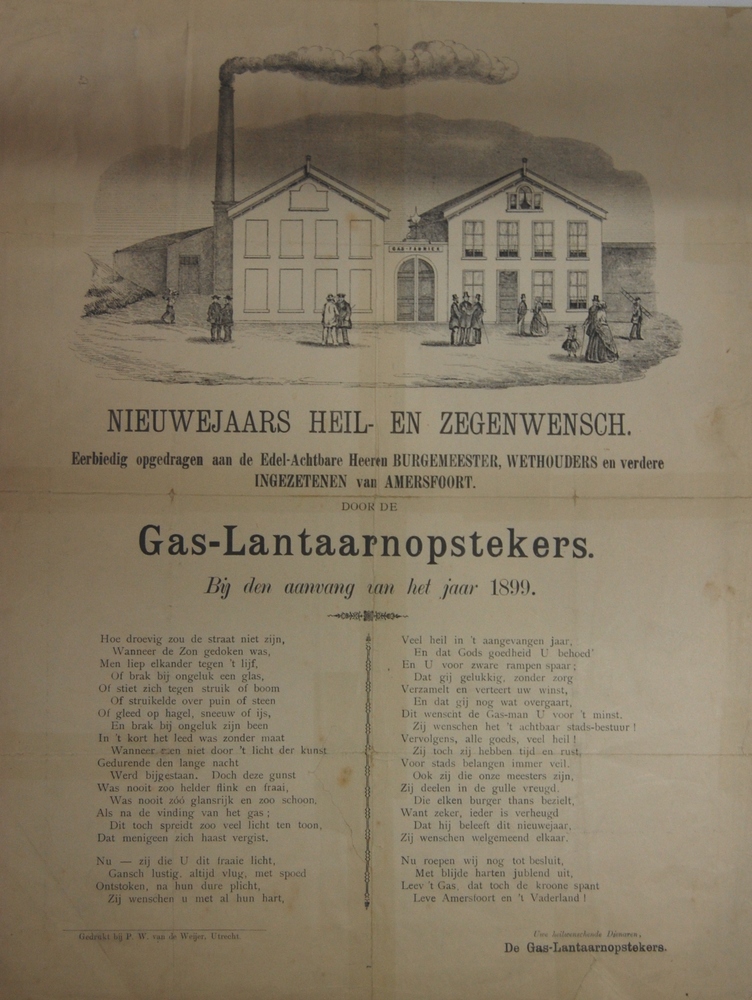 Nieuwjaarswens Gaslaantaarnopstekers Amersfoort, 189...
