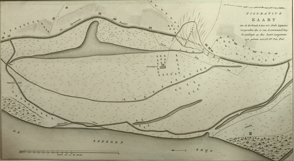 Kaart Beneden-Rijn met Loowaard en de dijkdoorbraak ...