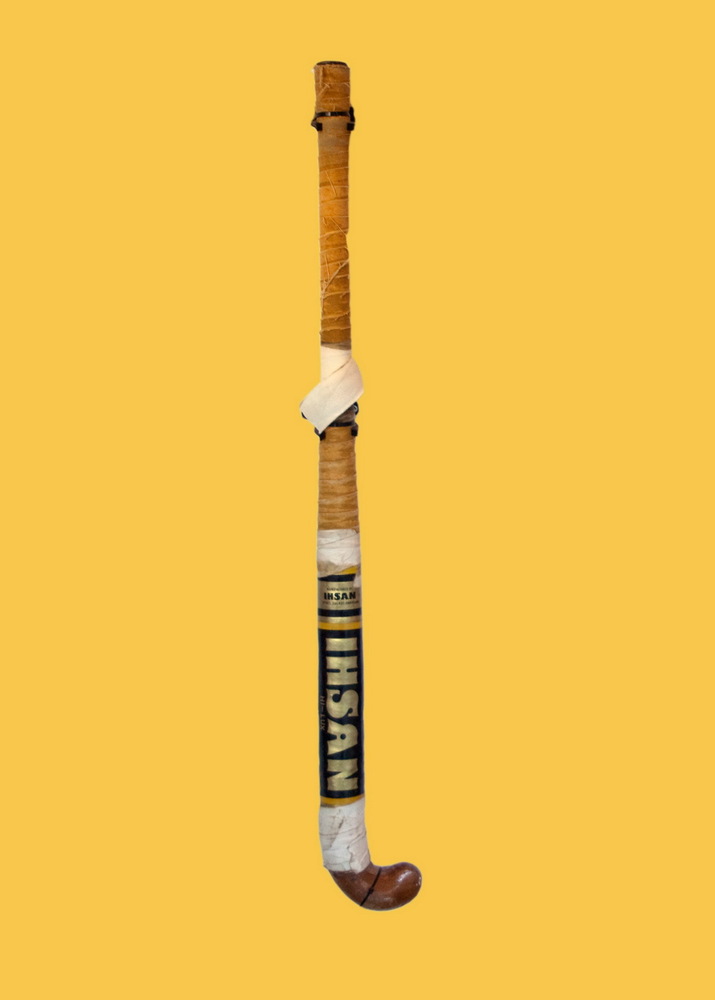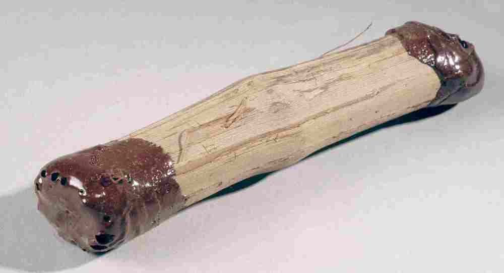 Houten stick met geel windsel en voorzien van handte...