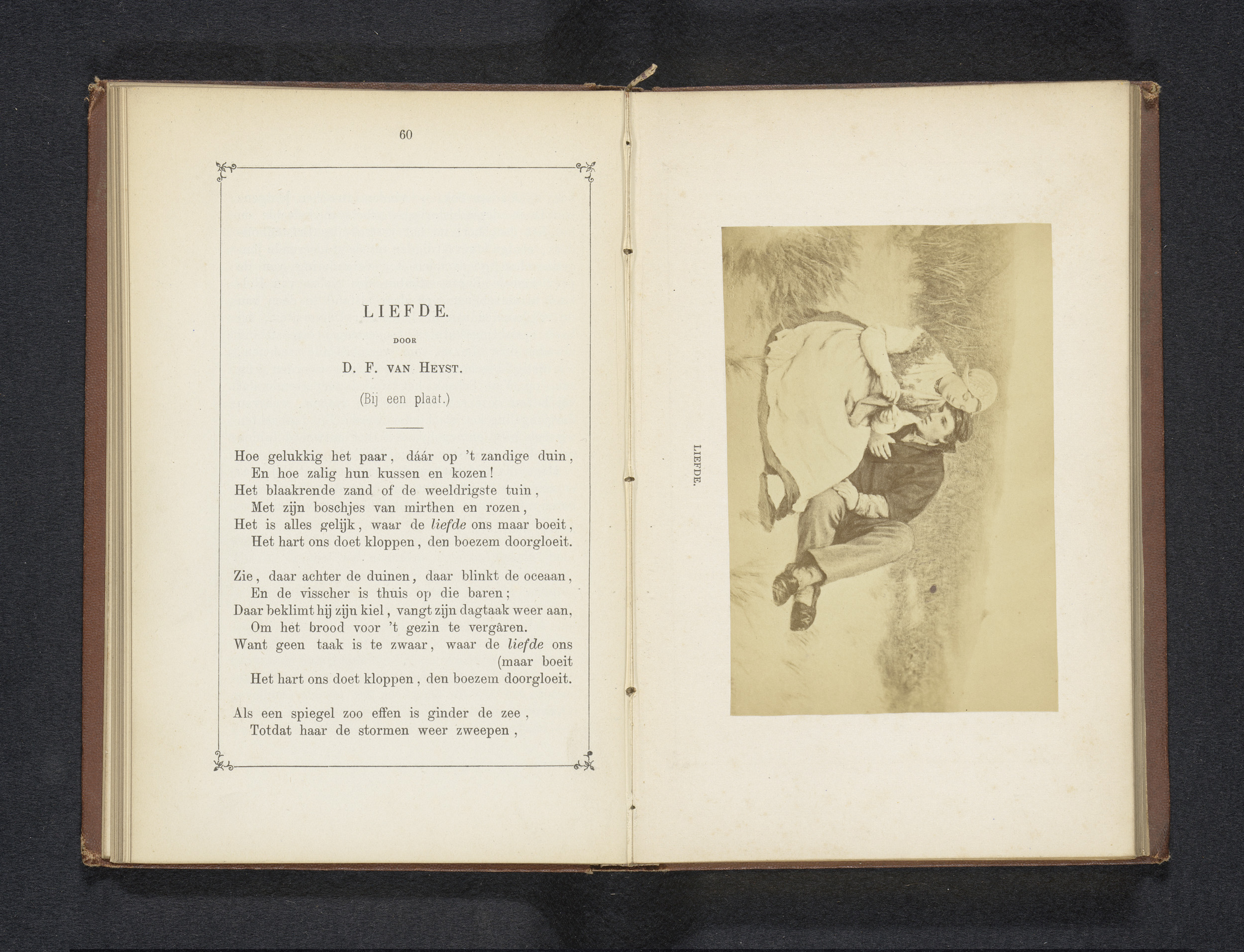 Fotoreproductie van een schilderij van geliefden in ...