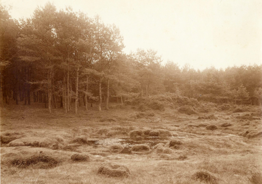 Op de Veluwe. Schaapskooi met kudde