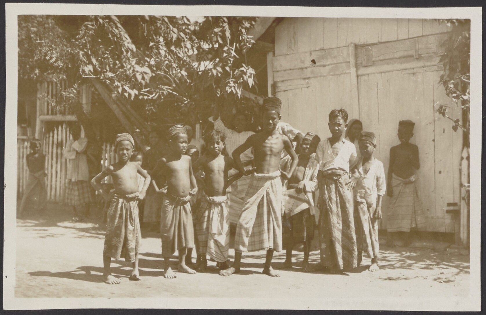 Javaanse matrozen staan op het dek van de ss. Saarbr...