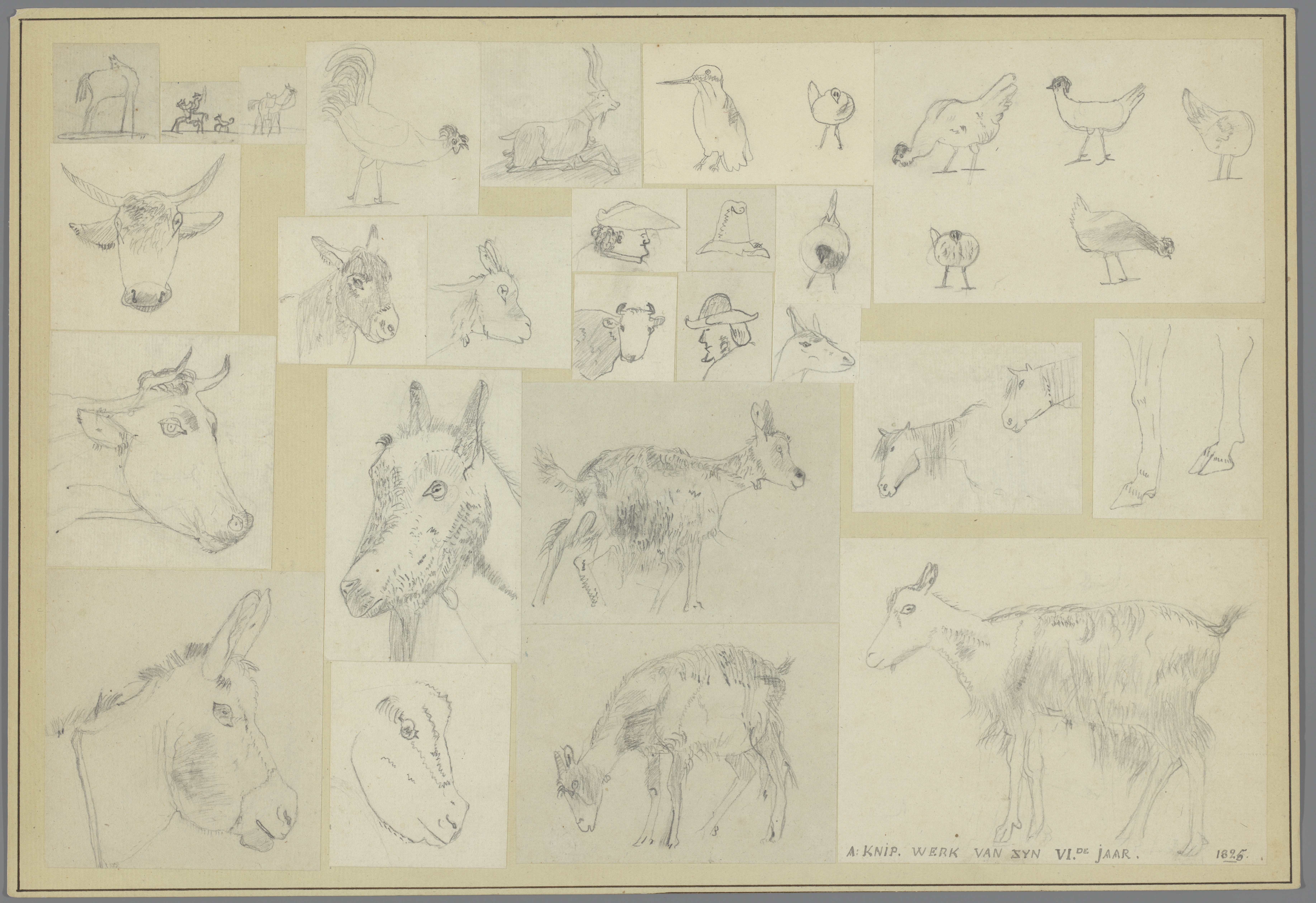 Karton waarop 46 kindertekeningen en 6 knipsels van ...