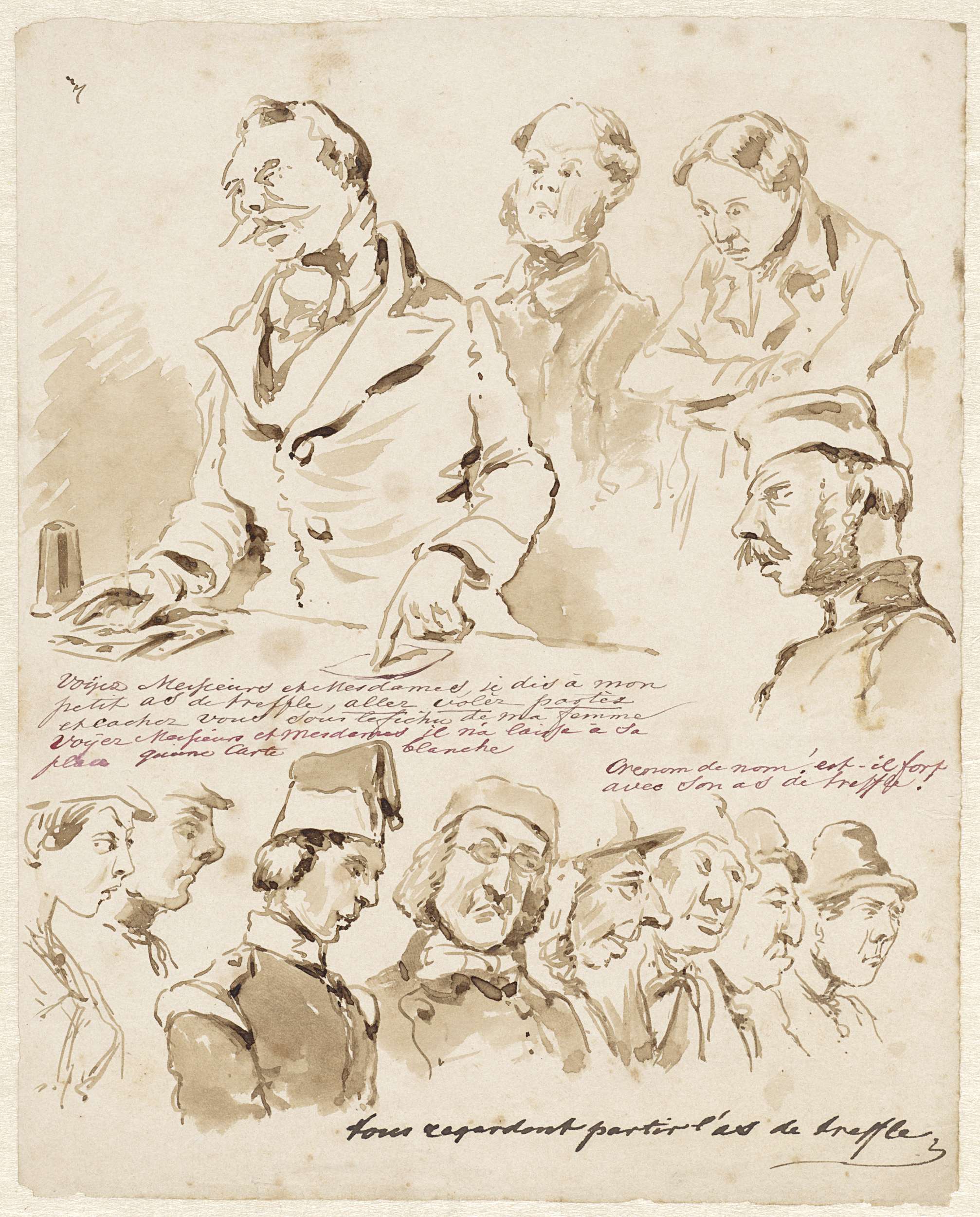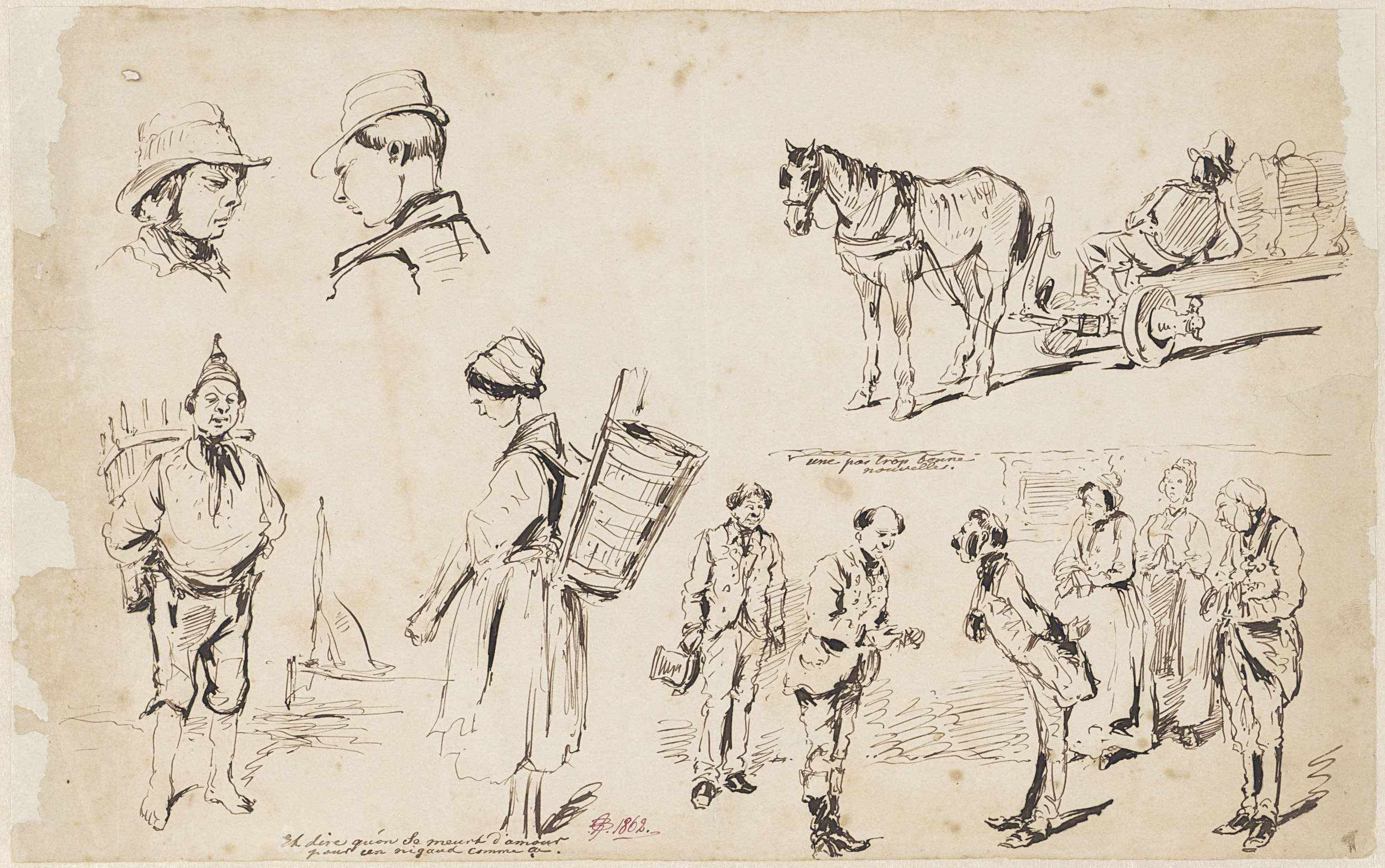 Studieblad met naakte vrouwen, kinderen en hoofden