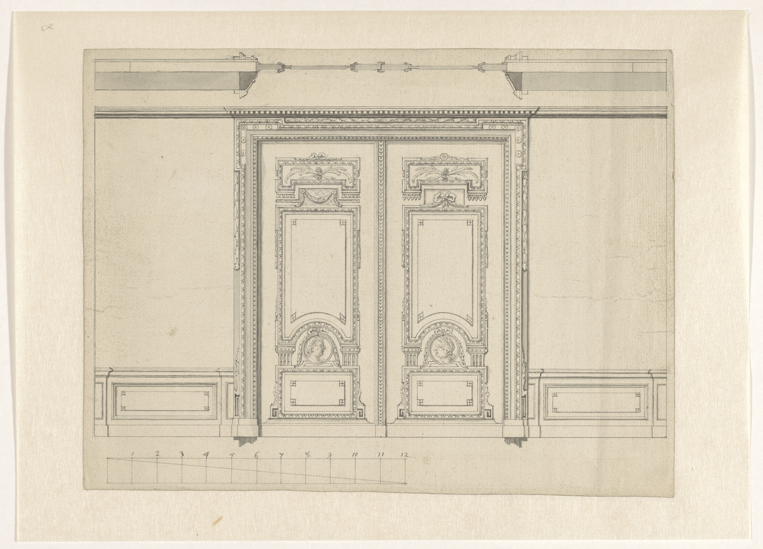 Ontwerptekening met kamerbetimmering met dubbele deuren