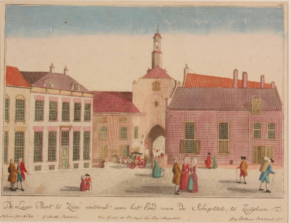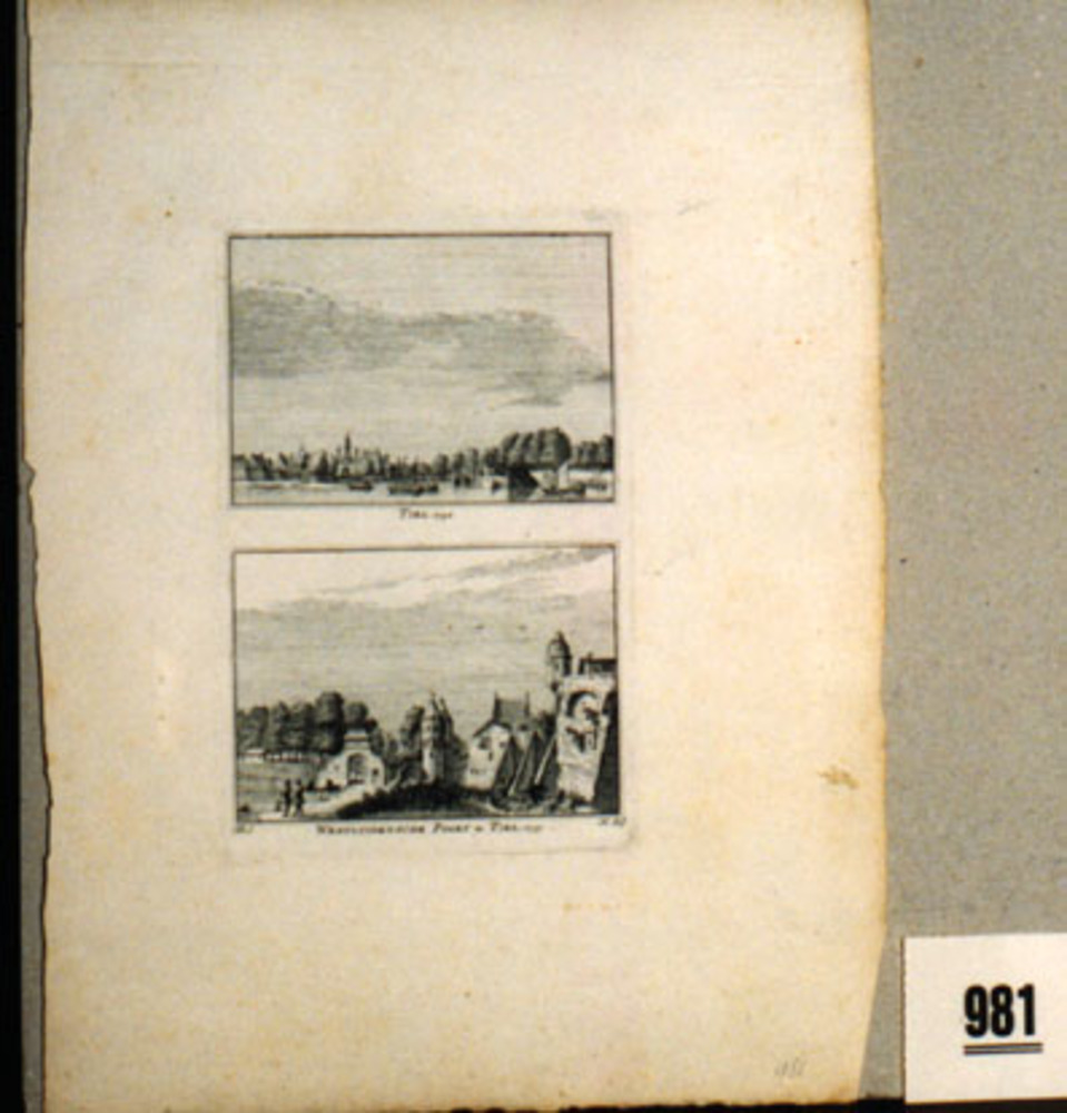 Gravure "Tiel.1742 Westluidenschepoort Poort te Tiel...