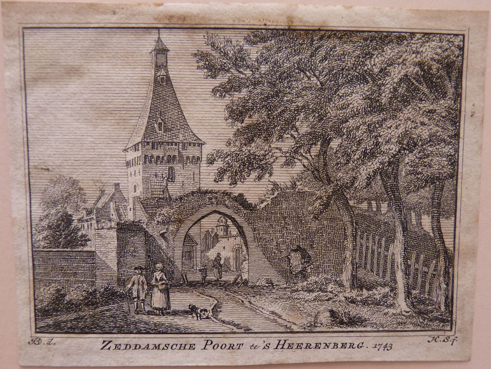 Gravure "Zeddamsche Poort te 's-Heerenberg" op papie...