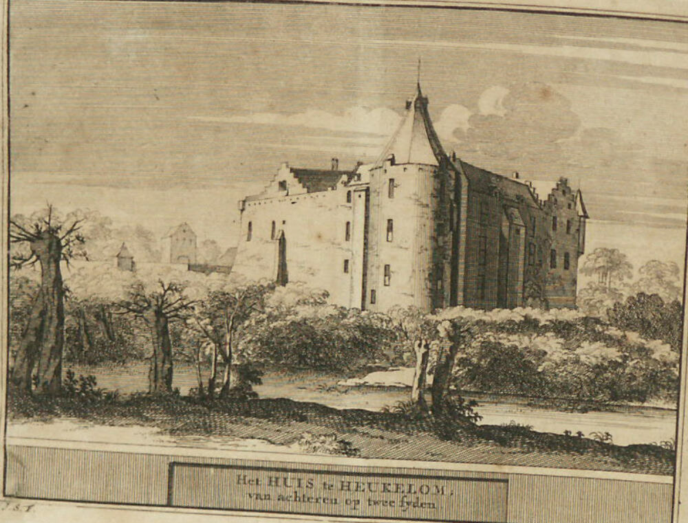 gravure voorstellende Het HUIS te HEUKELOM van achte...