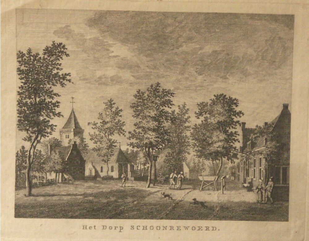 Gravure voorstellende Het dorp Schoonrewoerd, vervaa...