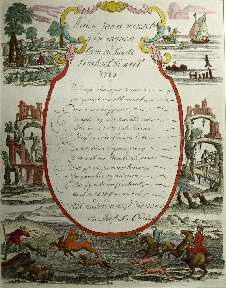 Prent met Nieuwjaarswens. Ovale schrijfruimte in het...