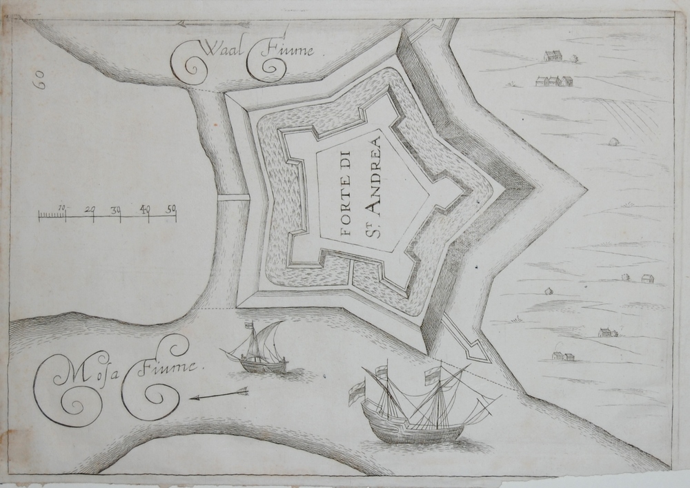 plattegrond fort St. Andries tussen Maas en Waal. To...