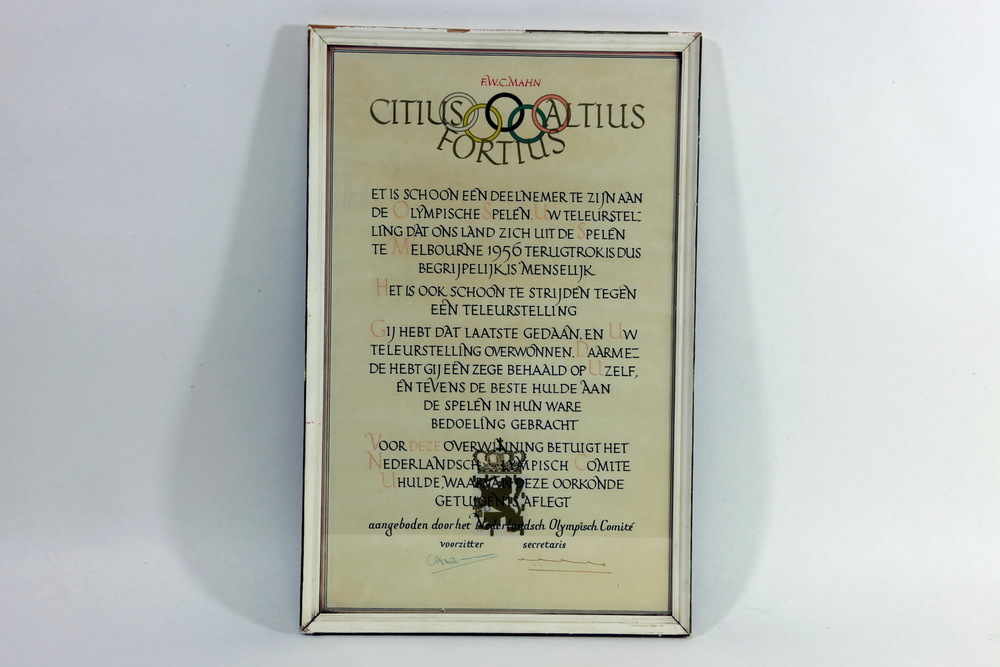 Olympisch deelnemersdiploma van M.R. Frese (NOC) van...