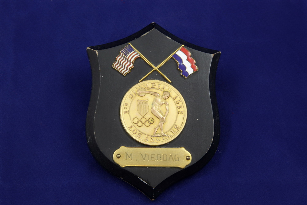 Schildje van zwemster Marie Vierdag (zilver 4x 100 e...