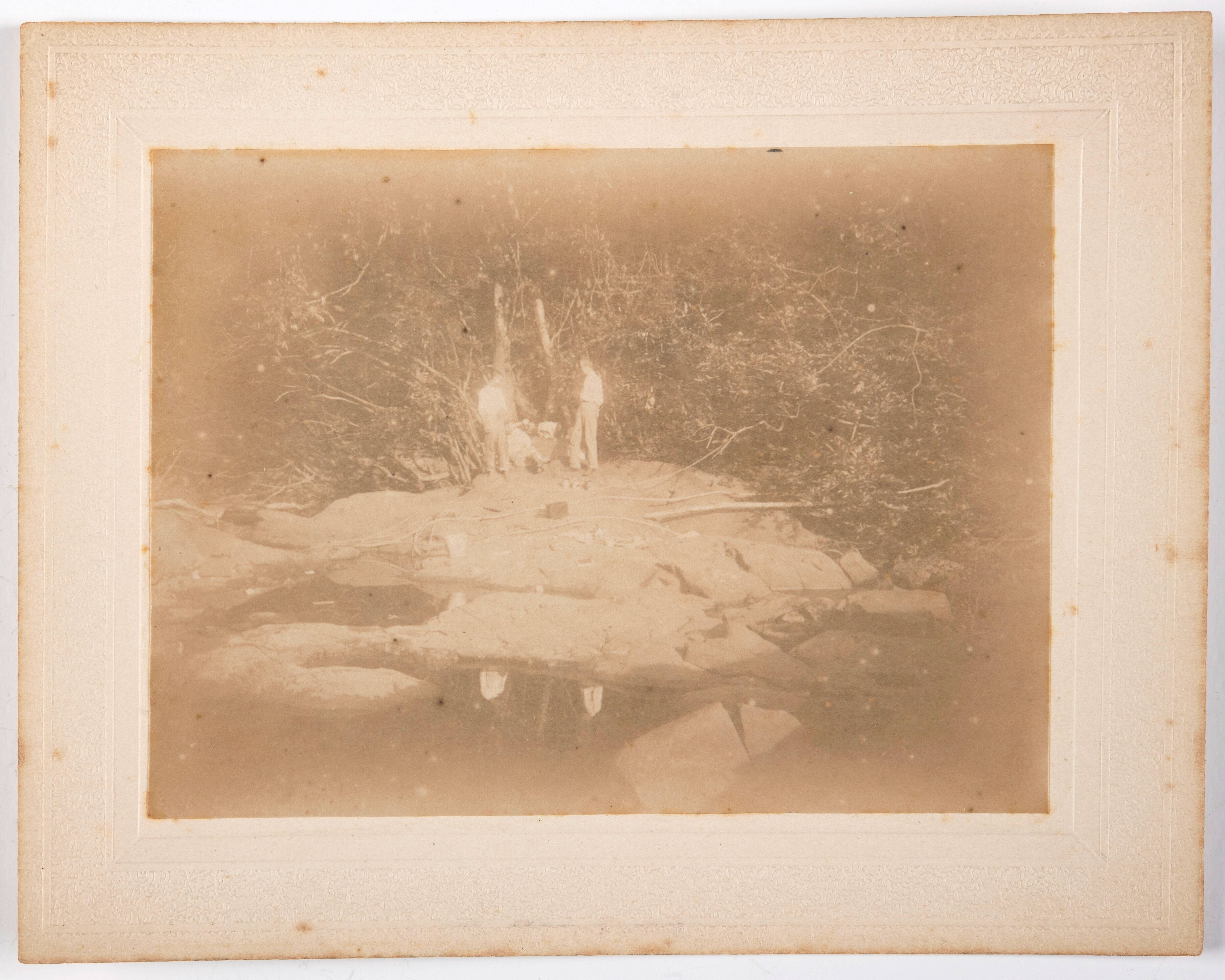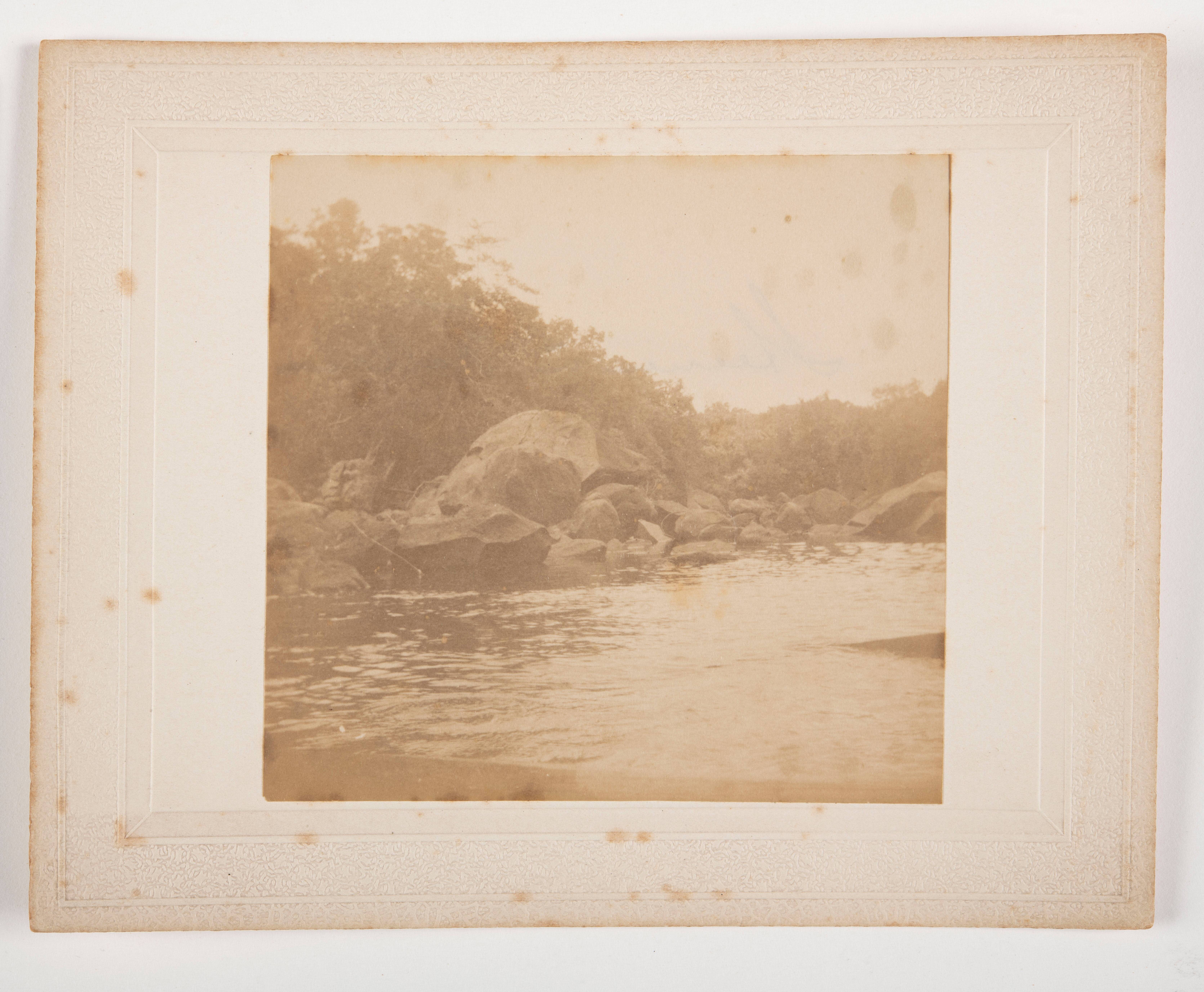 Resten van een kamp op de rotsen aan de Boven Nickerie