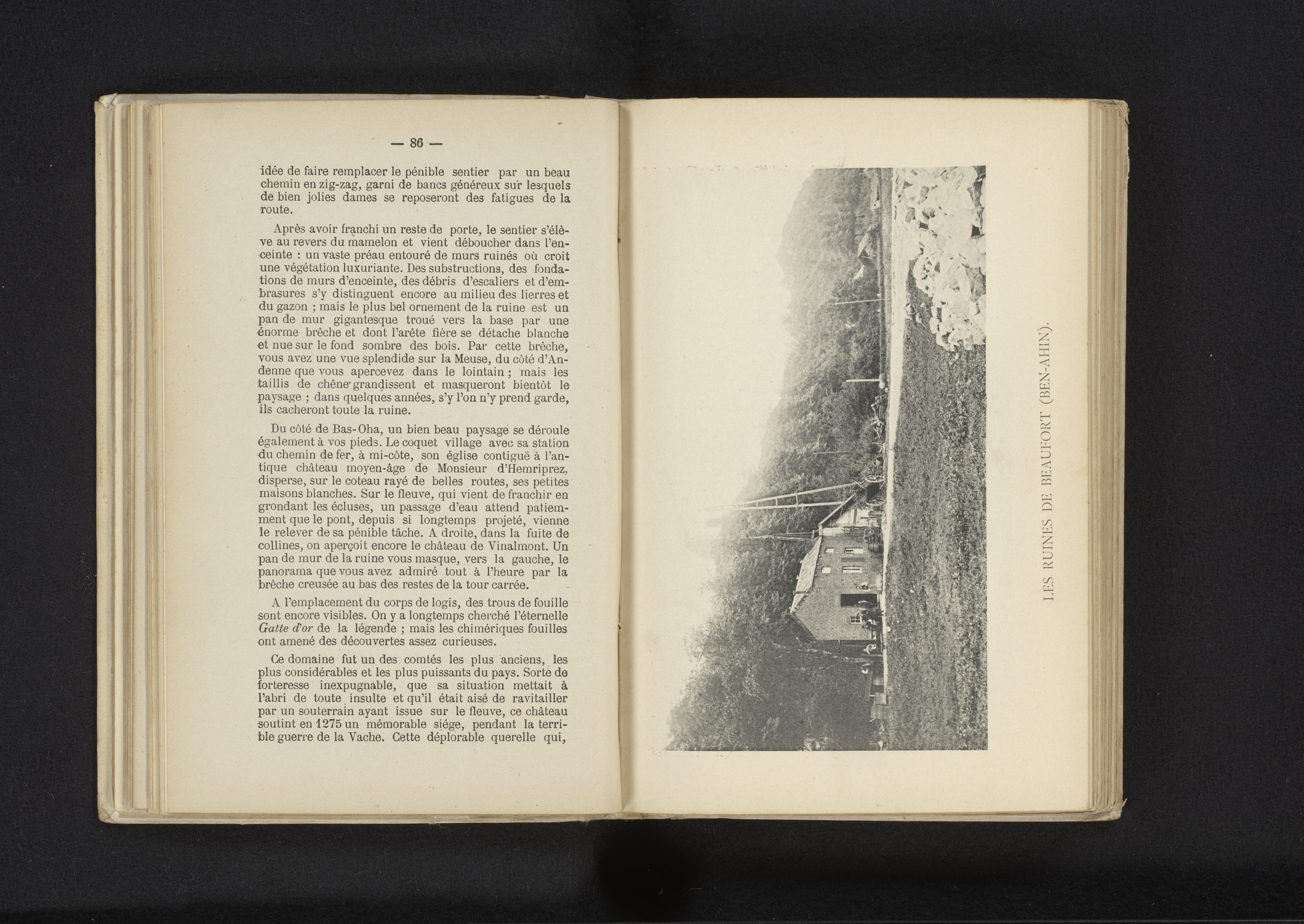 Gezicht op de ruïnes van Château de Beaufort te Hoei