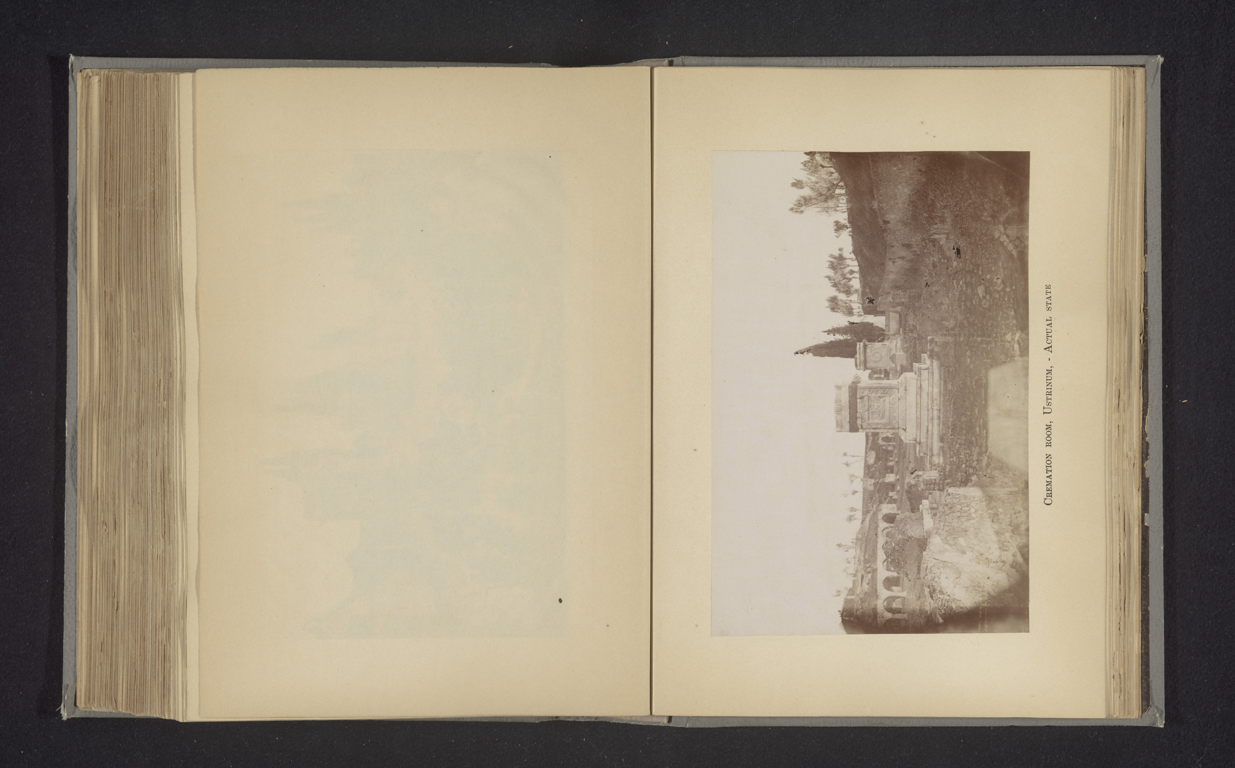 Gezicht op de ruïnes van een plaats voor een uitvaart