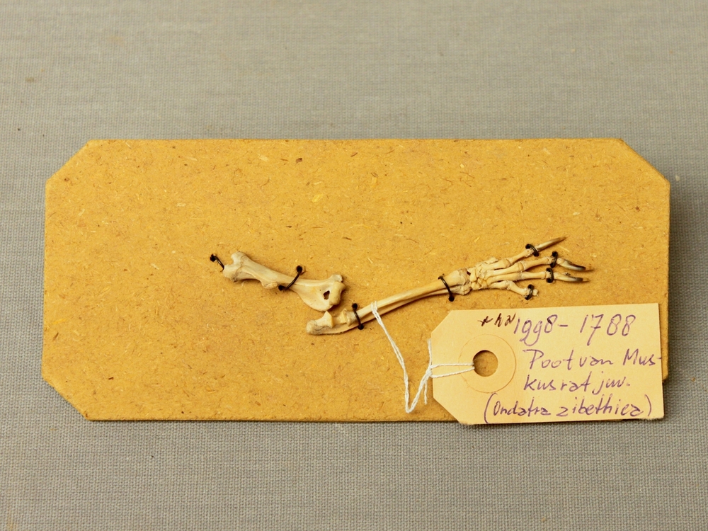 Muskusrat; skelet voorpoot; op strokarton