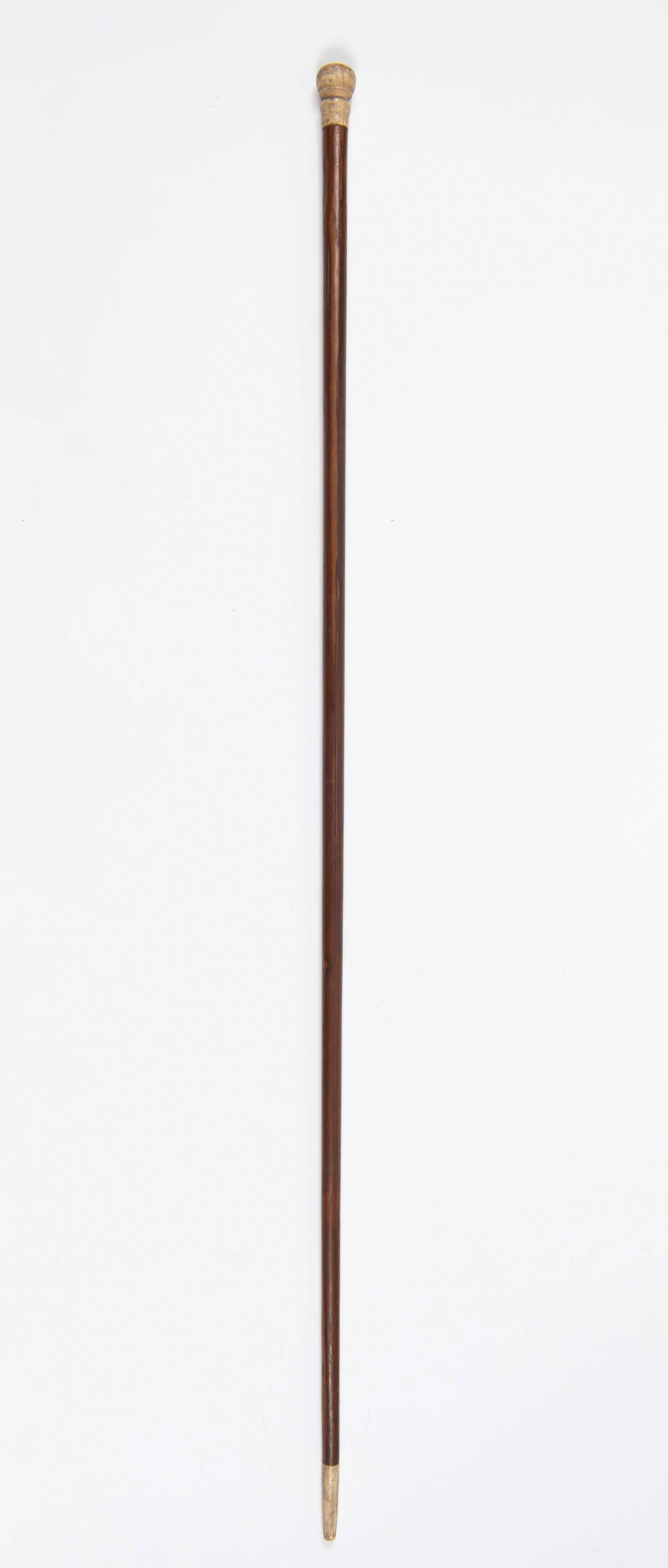 Rotan wandelstok met hoornen handvat een metalen pun...