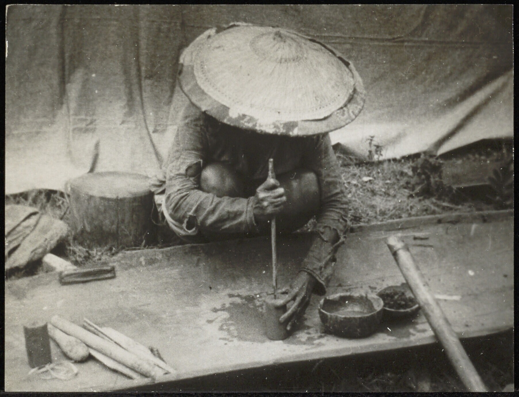 Dayaks bezig met de voorbereidingen voor het bakken ...