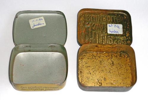 Rol / Tabak / pruimrollen blikjes. Twee bijna vierk...