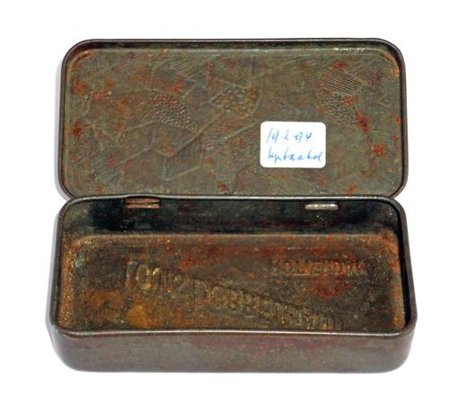 Rol / Tabakblikje. Langwerpig, rechthoekig bruin bli...