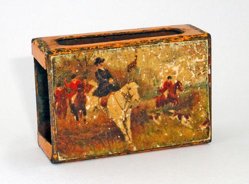 Lucifersdoos houder van metaal met plaatjes van ruit...