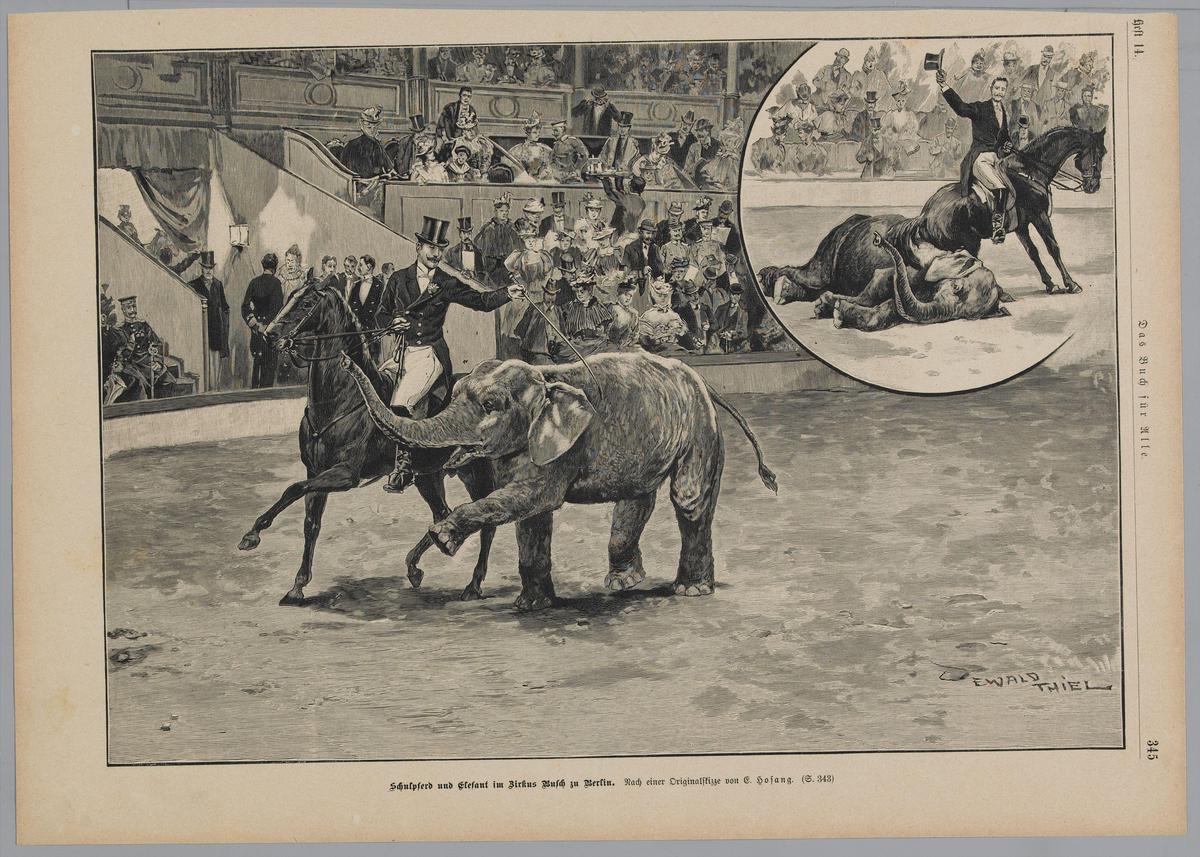 Dressuur te paard en olifant in Circus Busch in Berlijn