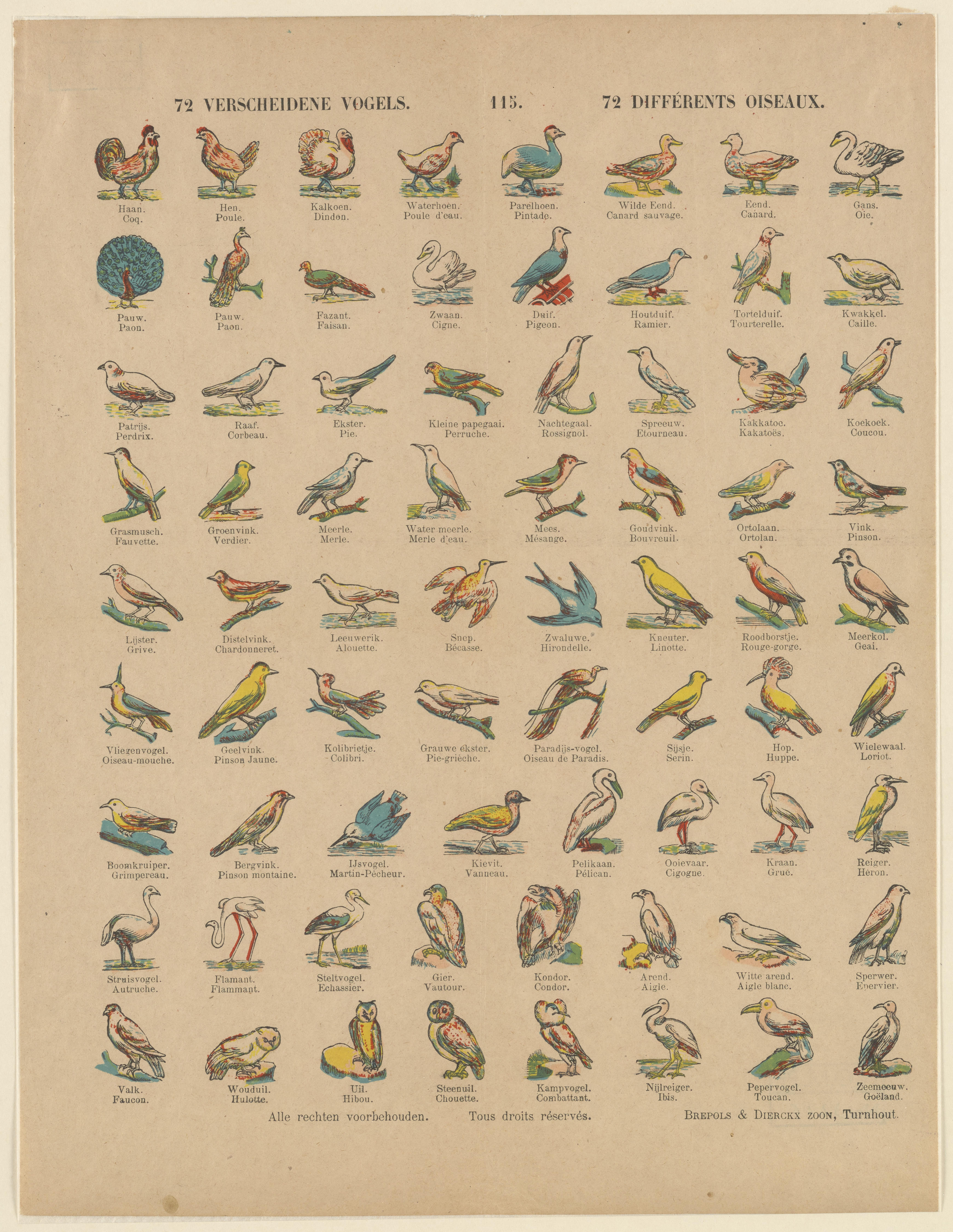72 Verscheidene Vogels. - 115. - Différents Oiseaux.