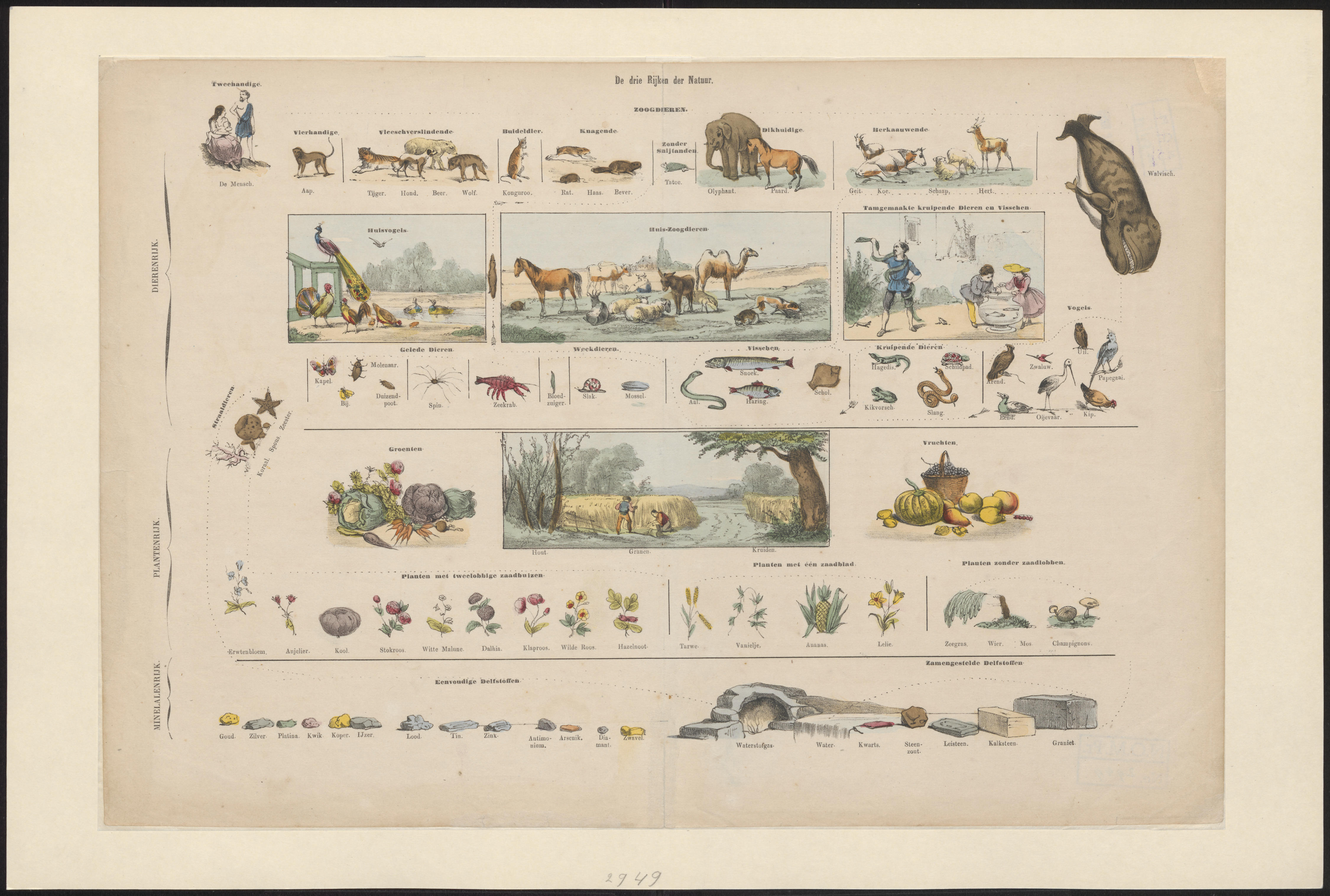 Onderwijsprent met menselijke en dierlijke beweginge...