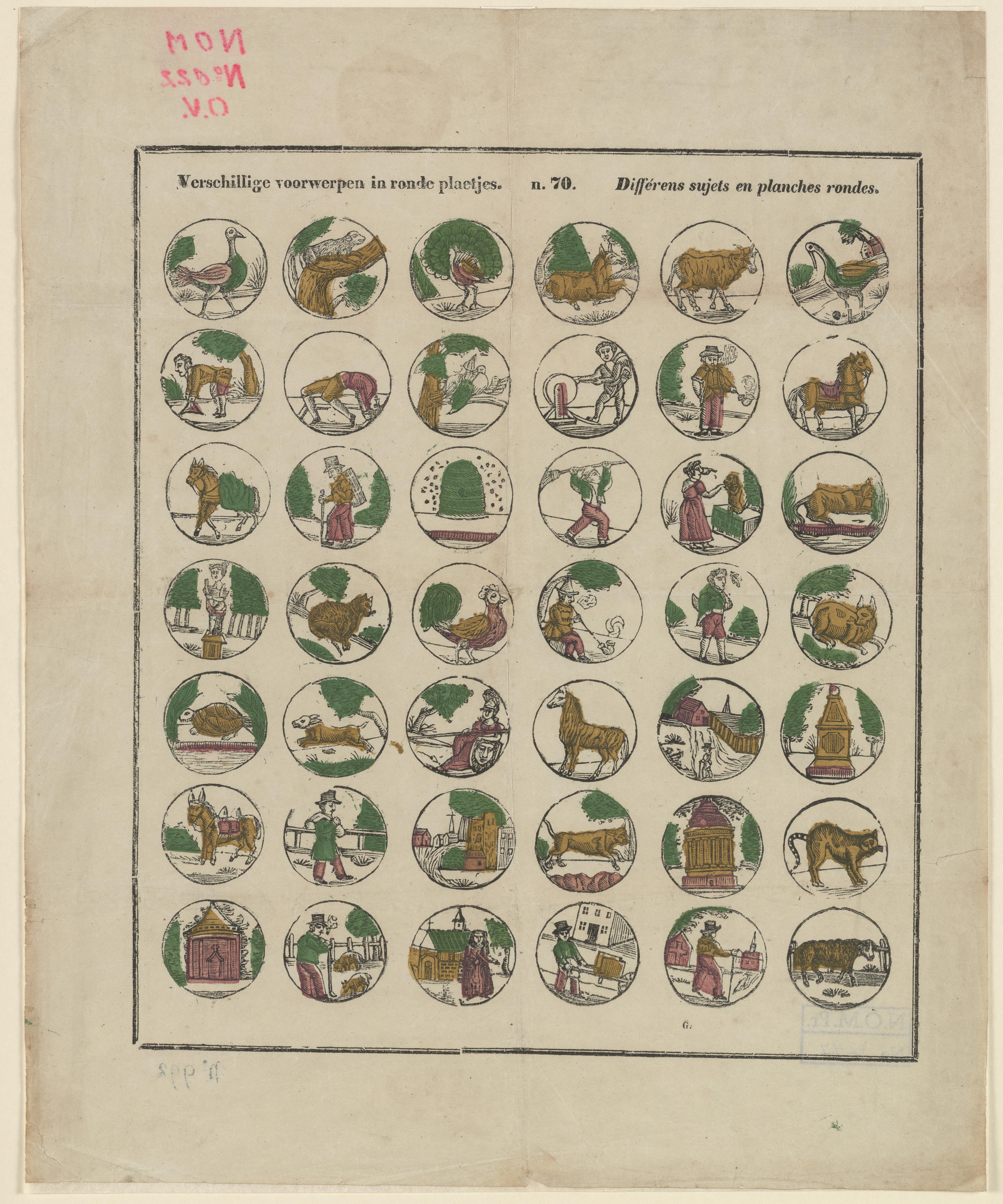 Verschillige voorwerpen in ronde plaatjes. - N.70 - ...