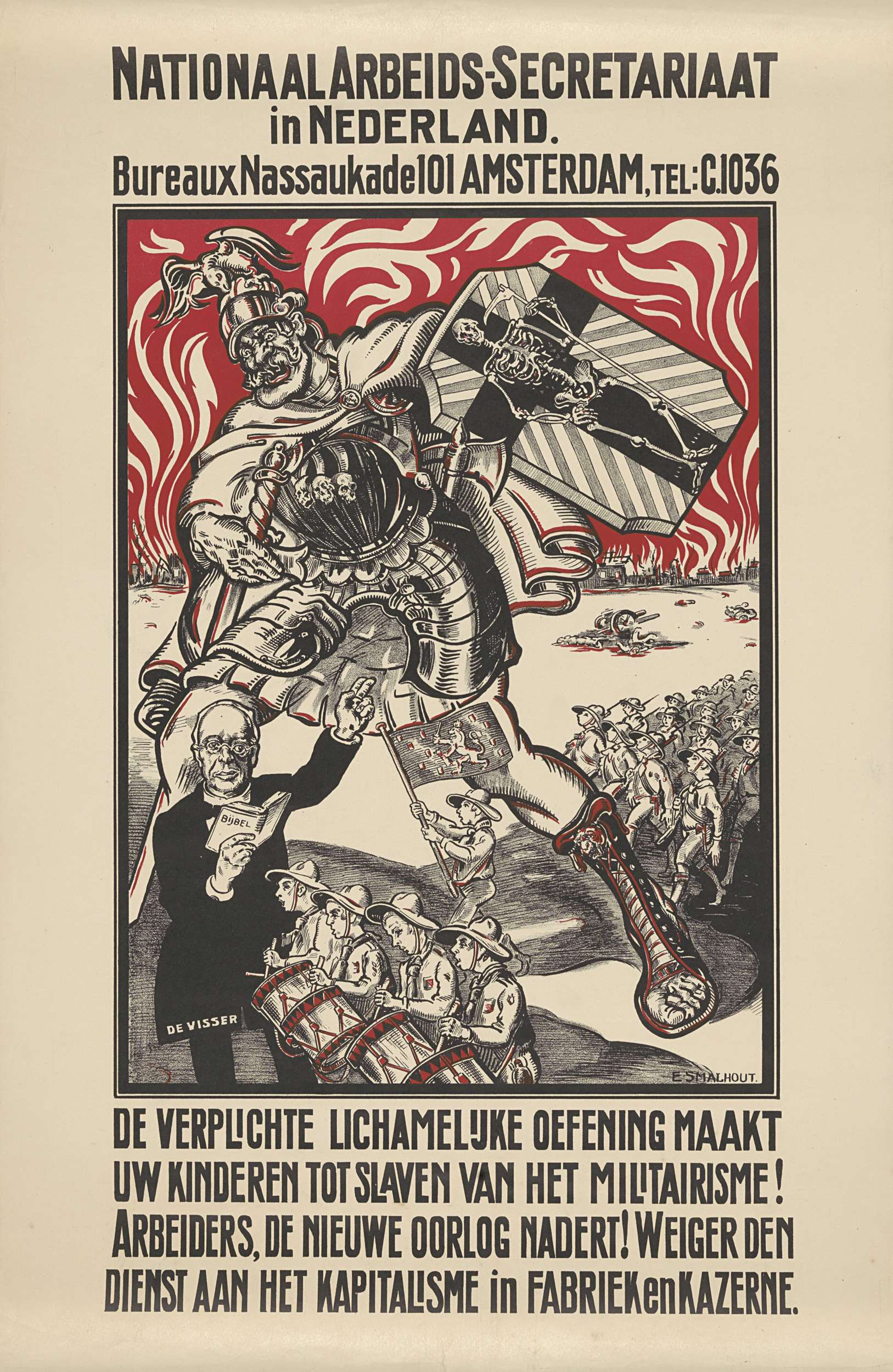 Affiche tegen militarisme uitgegeven door het Nation...