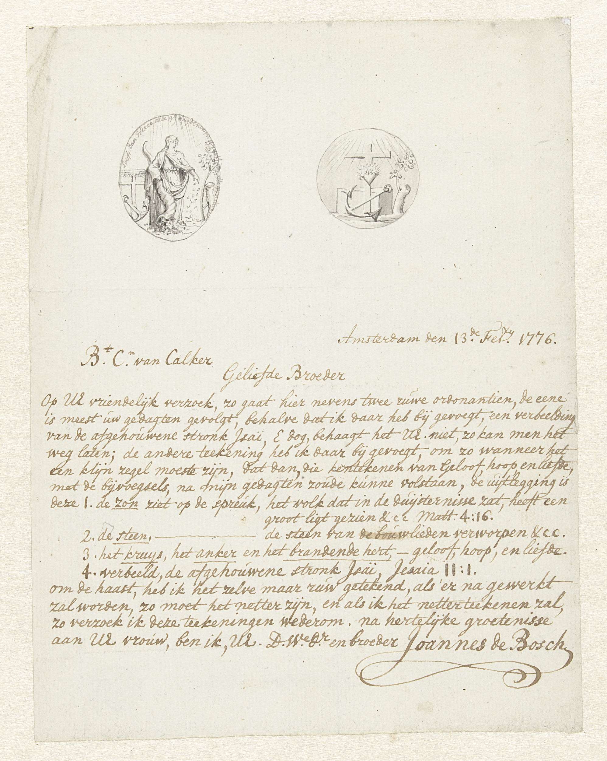 Brief van Jan Bulthuis waarin hij twee schetsen ter ...