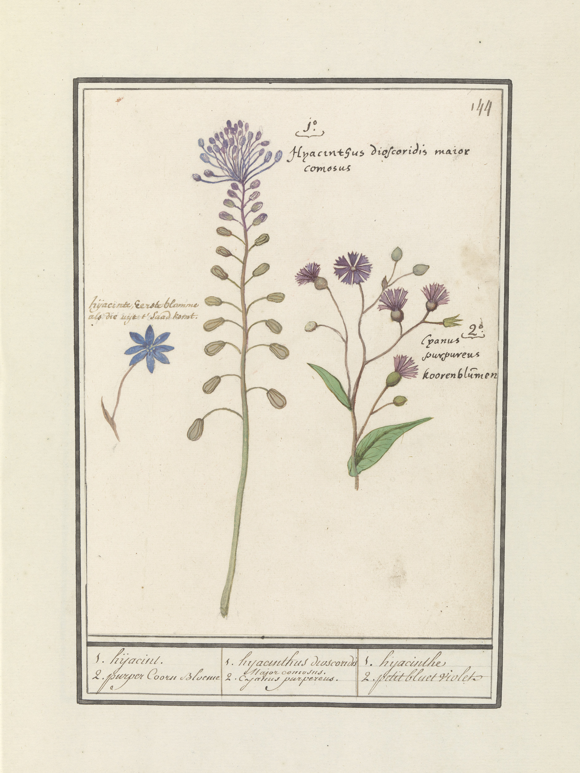 Kuifhyacint (Muscari comosum) en korenbloem (Centaurie)