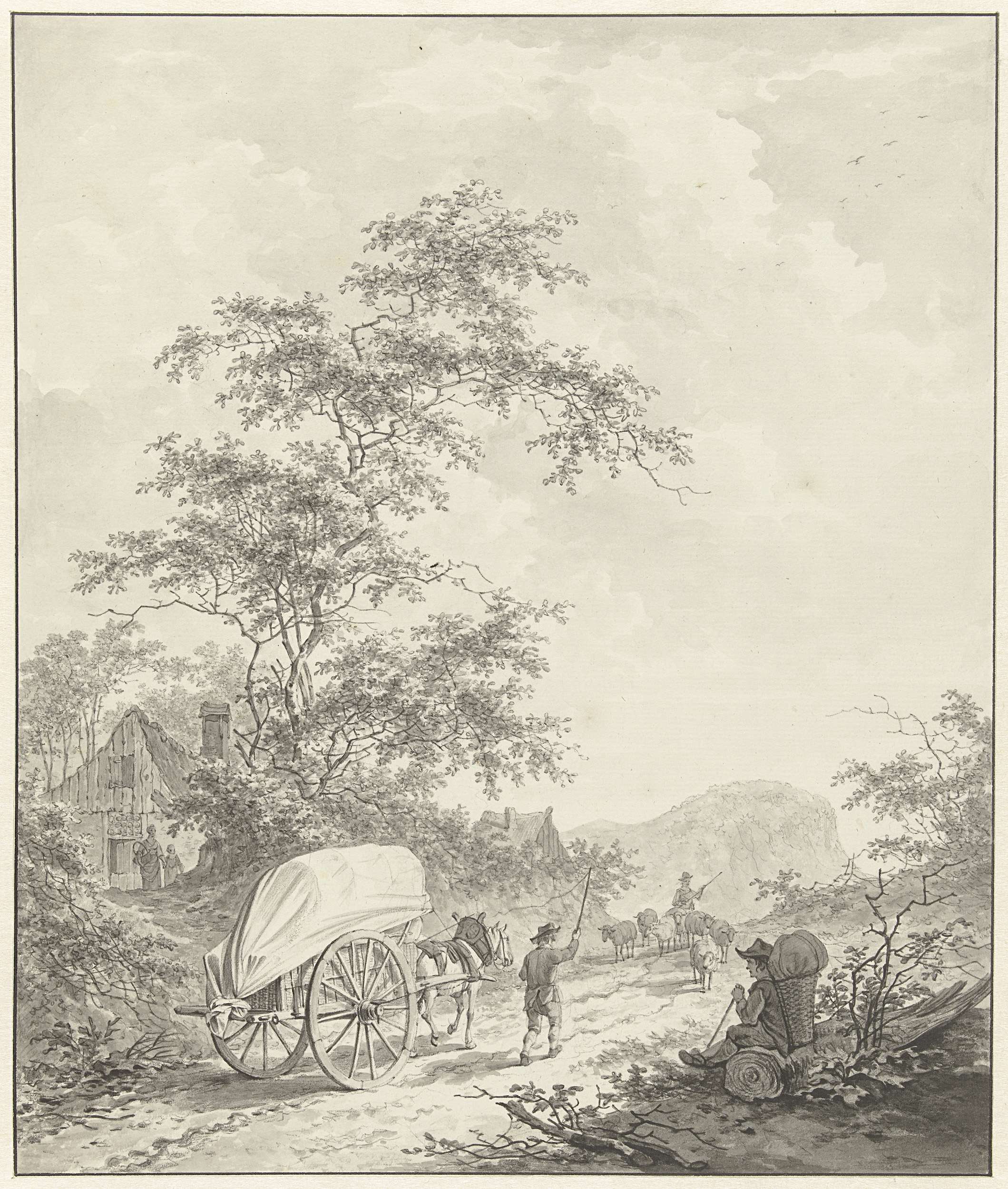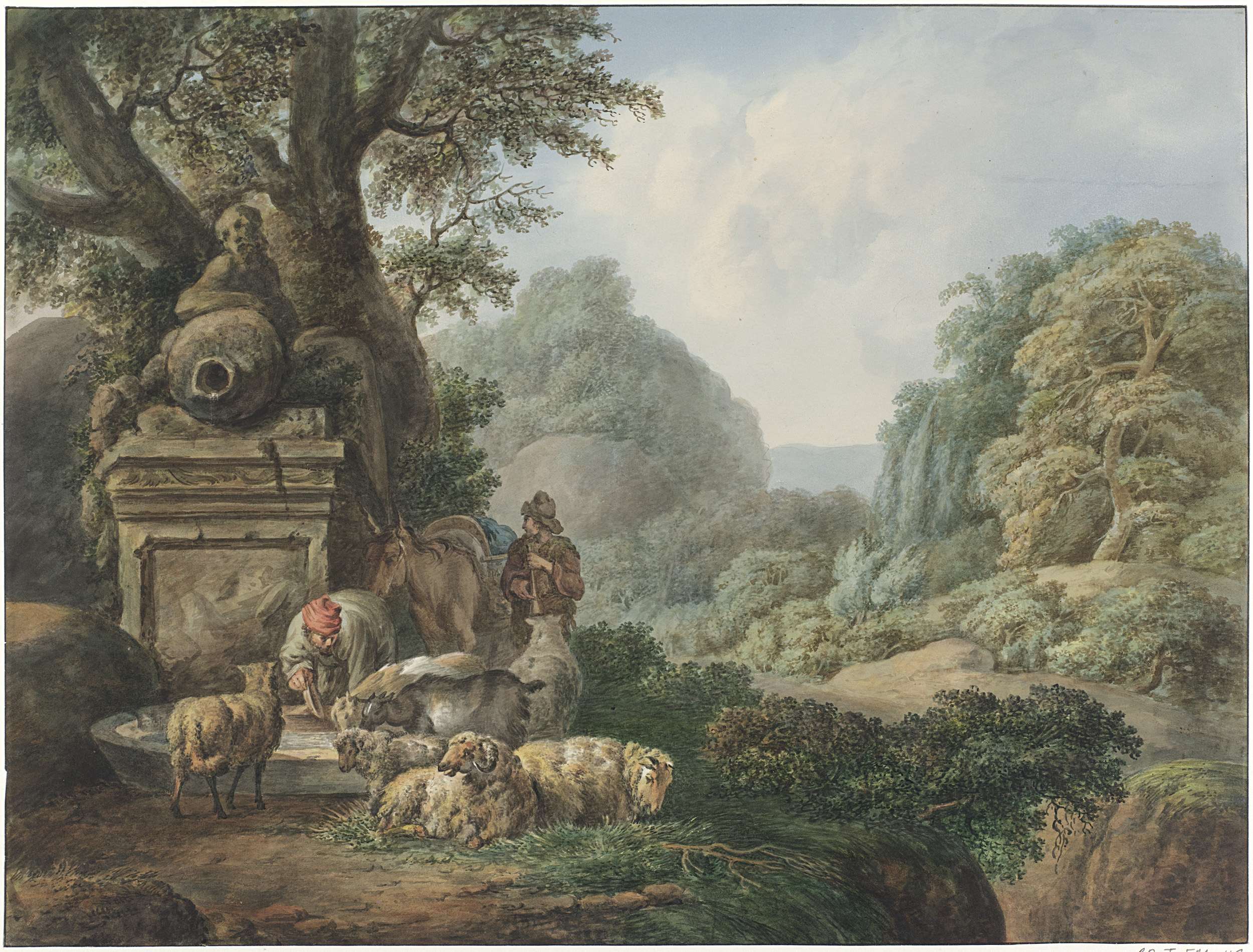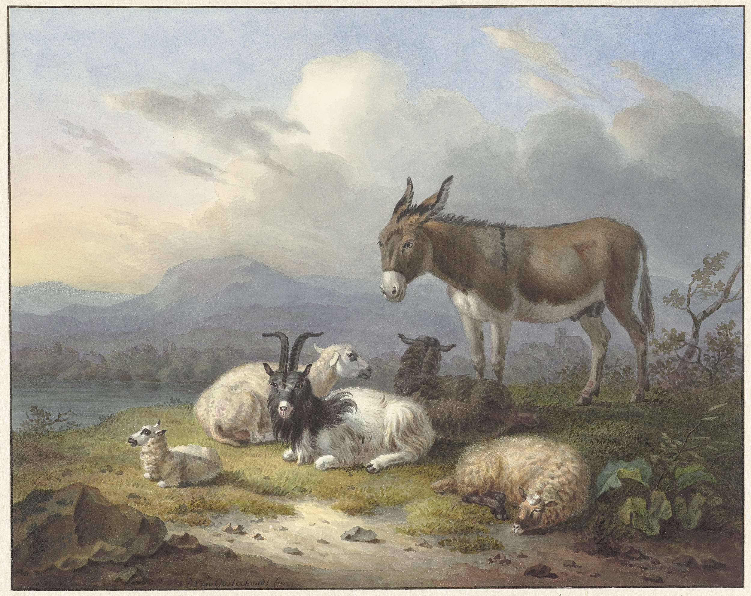 Landschap met ezel, geit en schapen