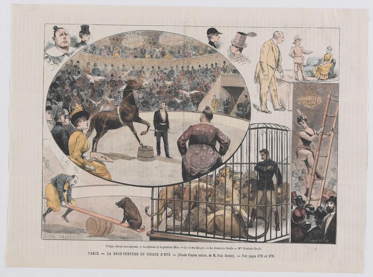 Dresseurs met paarden en leeuwen, clowns, acrobate