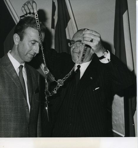 Foto in zwart-wit van de heer Tj. A. Hettinga, voorz...