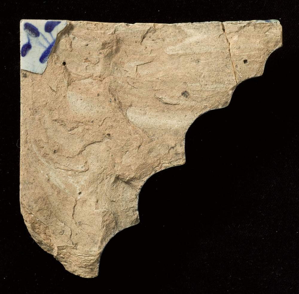 Randtegel in tinglazuur, voorstellende randhoek met ...