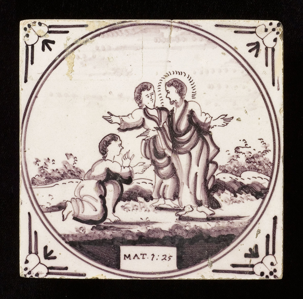 Tegel an keramiek met tinglazuur, voorstellende: het...