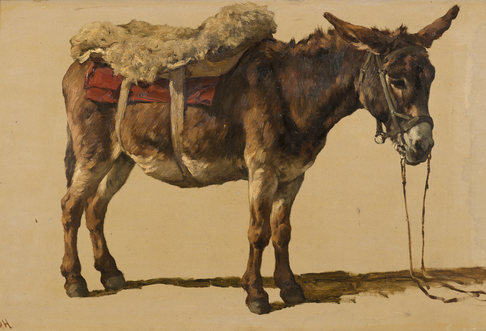 Studie van een ezel met zadel