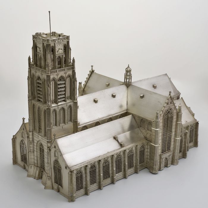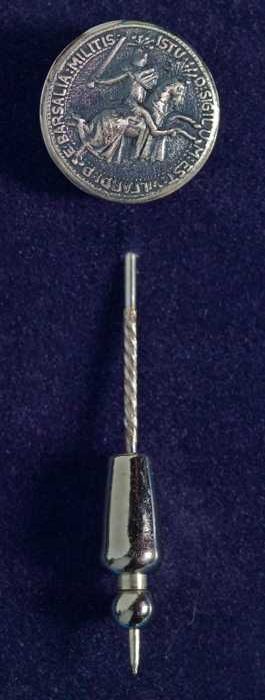 Gegoten zilveren dasspeld met stadsprofiel van Rotte...