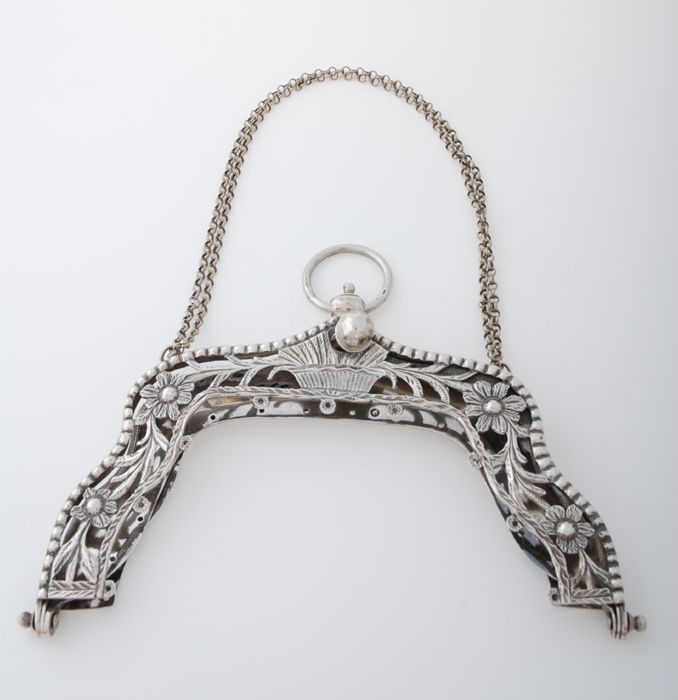 Zilveren tasbeugel met opengewerkt bloemmotief en ke...
