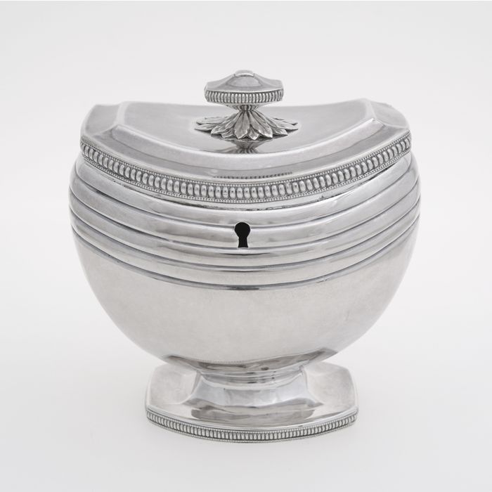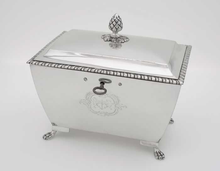 Vierdelig theeservies: zilveren suikerpot met hengsel