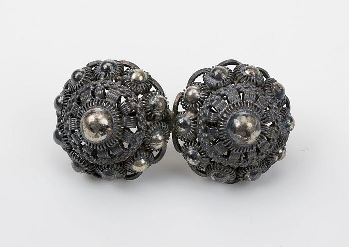 Zilveren broche met twee grote Zeeuwse knoppen, fili...