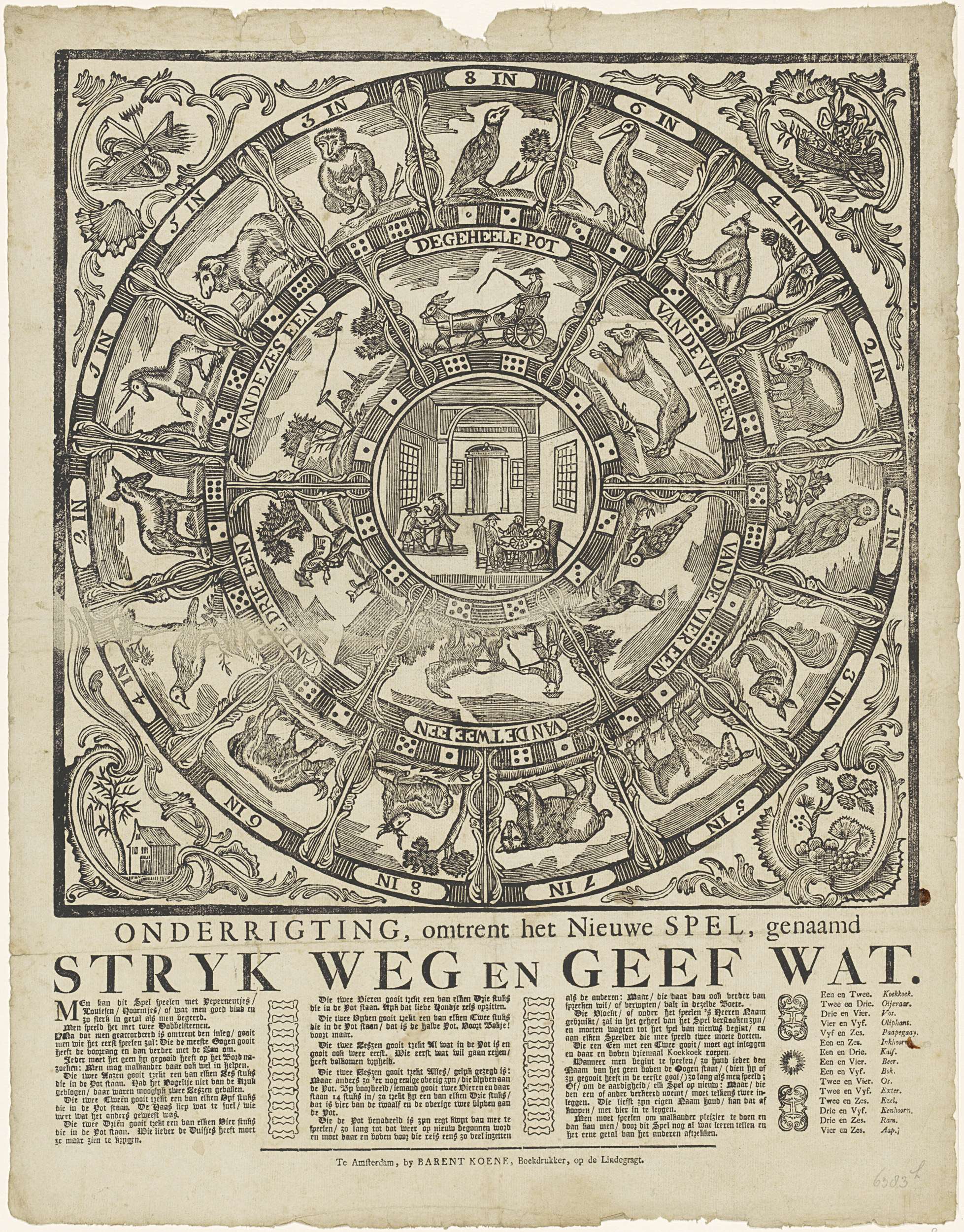 Bordspel genaamd 'Strijk weg en Geef wat', ca. 1780-...